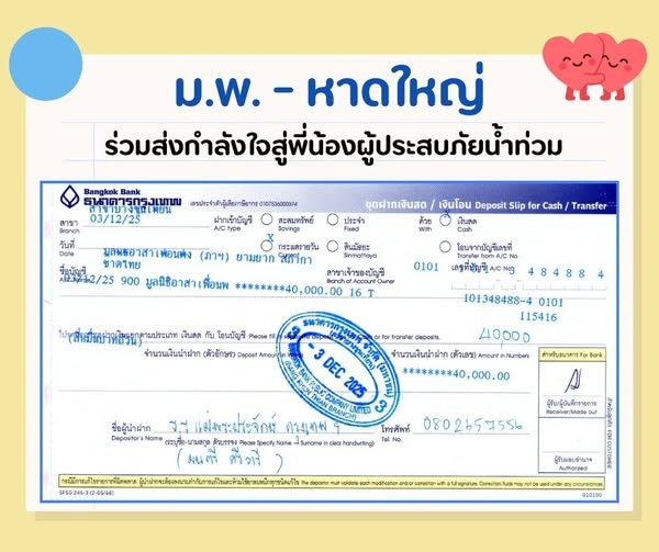 โรงเรียนแม่พระประจักษ์ขอขอบพระคุณผู้มีอุปการคุณ ณ ตลาดซอยอาทิตย์ทุกท่านเป็นอย่างสูง ที่ร่วมช่วยเหลือพี่น้องชาวหาดใหญ่ร่วมกับโรงเรียนของเรา ขอให้ทุกท่านประสบแต่ความสุขเสมอ  |