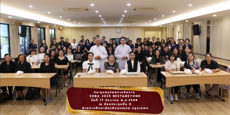 คุณครูอัญชลี เทพรัตนะ ผู้ช่วยผู้อำนวยการฝ่ายวิชาการ คุณครูศิริพันธ์ เมืองแก้ว ตัวแทนคุณครูระดับปฐมวัย เข้าร่วมประชุมสรุปผลการจัดงาน และรับมอบเกียรติบัตรพร้อมของที่ระลึก โรงเรียนร่วมจัดงาน “EDBA 2025 BEST & BEYOND” และส่งนักเรียนเข้าร่วมแข่งขันเทคโนโลยีและนวัตกรรม หุ่นยนต์ Robotics Challenge ร่วมกับโรงเรียนในเขตการศึกษาที่ 1-6 ฝ่ายการศึกษา อัครสังฆมณฑลกรุงเทพฯ ทั้งหมด 35 โรงเรียน ณ โรงเรียนพระวิสุทธิวงศ์ จ.ปทุมธานี เมื่อวันที่ 8 ธันวาคม 2568 ที่ผ่านมา โดยมี