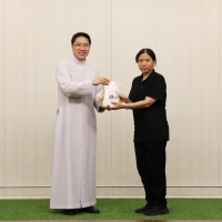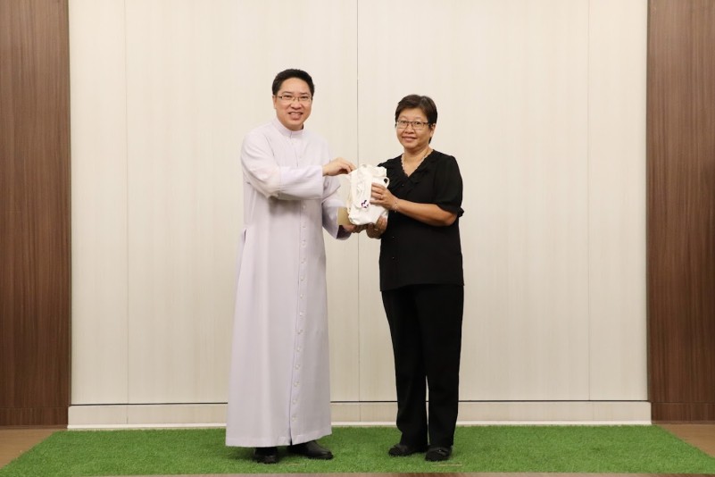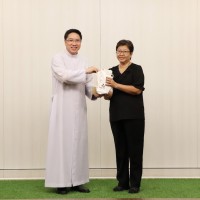 บาทหลวงเอกรัตน์ หอมประทุม ผู้อำนวยการ ฝ่ายการศึกษา อัครสังฆมณฑลกรุงเทพฯ กล่าวสรุปภาพรวมของงาน และมอบของที่ระลึก |