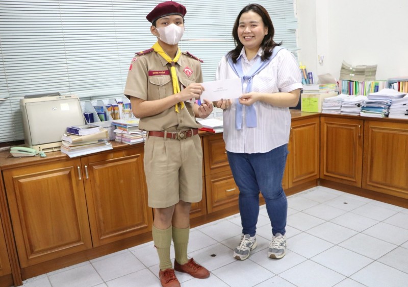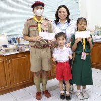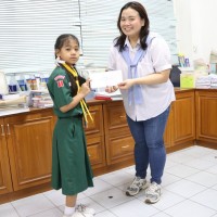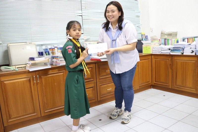 นางสาวอริสา พิมพ์ทวี ศิษย์เก่าและอดีตคุณครูโรงเรียนแม่พระประจักษ์ ได้มามอบทุนการศึกษาให้น้อง ๆ
