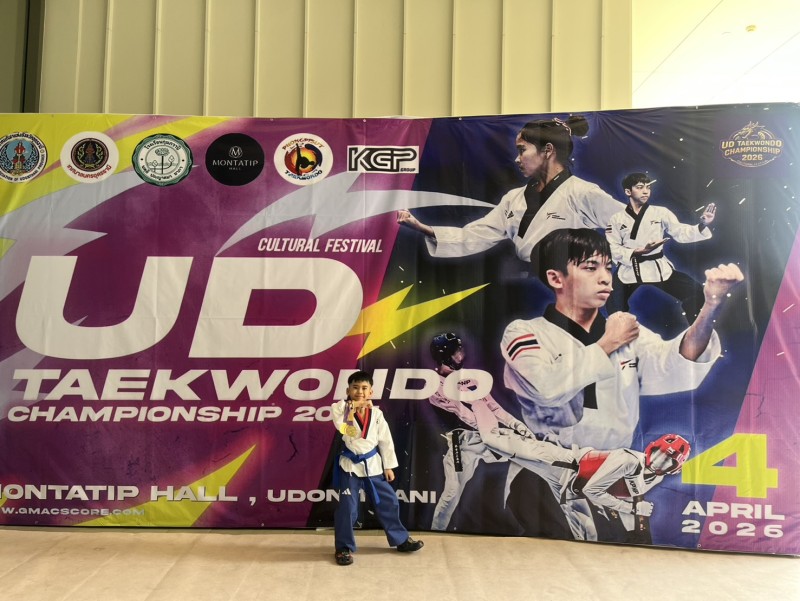 เด็กชายติณณ์ไตรย์ ชัยวิรัชได้รับรางวัลเหรียญทอง พุมเซเดี่ยว สายเขียวเหรียญทอง พุมเซทีมชาย สายฟ้าเหรียญทองแดง พุมเซเดี่ยว สายฟ้าแข่งขันเทควันโด รายการ UD Taekwondo Championship 2026 [ Cultural Festival ]