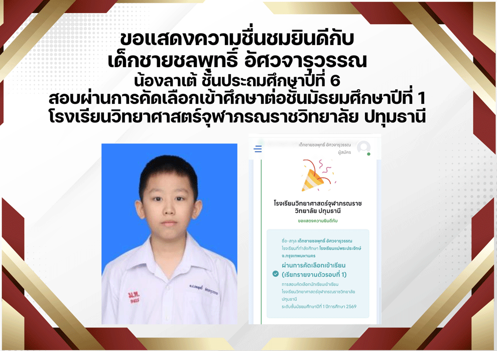ชื่อนักเรียน : เด็กชายชลพุทธิ์ อัศวจารุวรรณ