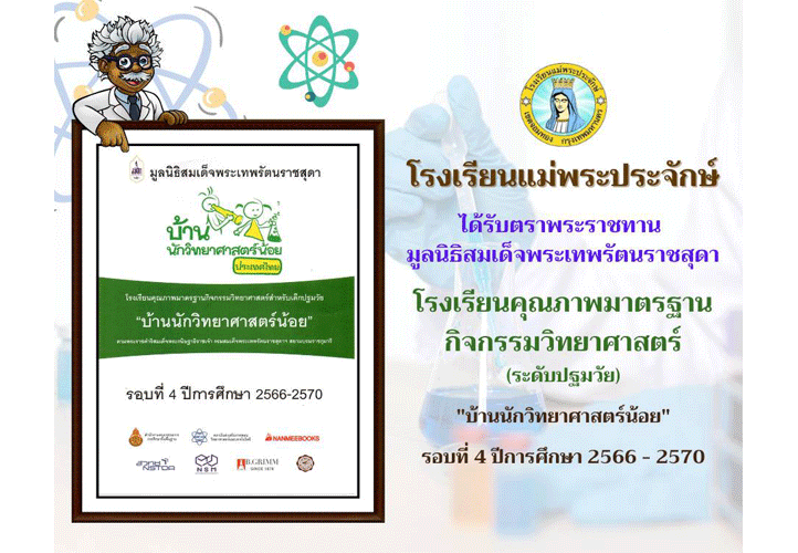 ได้รับตราพระราชทานมูลนิธิสมเด็จพระเทพรัตนราชสุดา โรงเรียนคุณภาพมาตรฐานกิจกรรมวิทยาศาสตร์