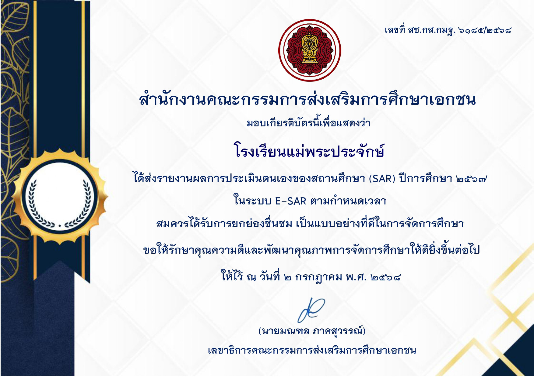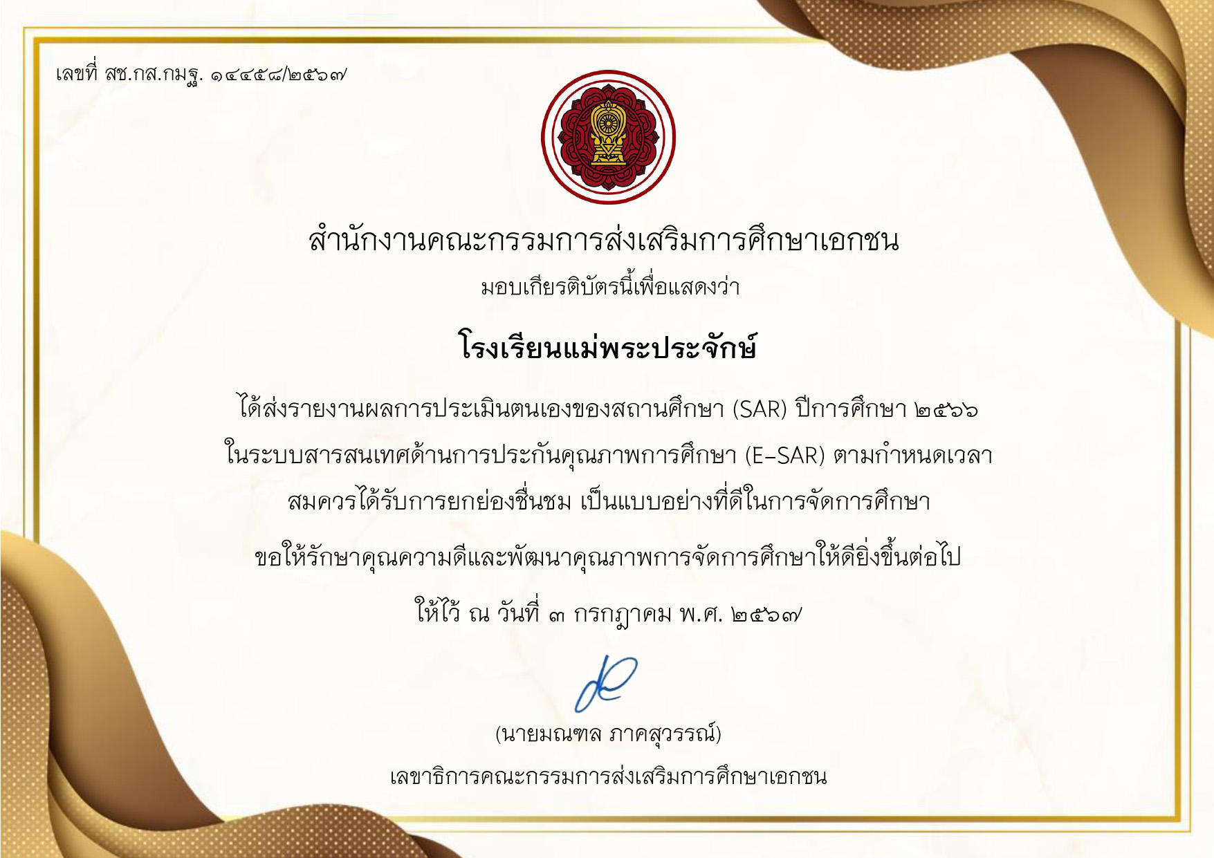 ส่งรายงาน E-SAR ปีการศึกษา 2567 ตามกำหนดเวลา