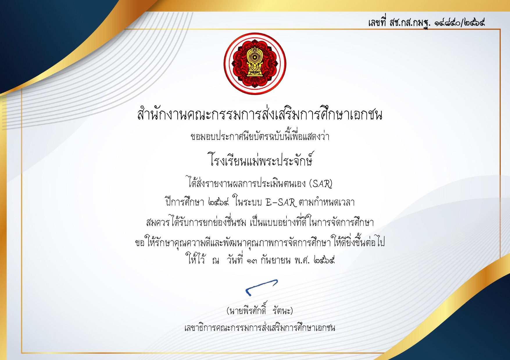 ส่งรายงาน E-SAR ปีการศึกษา 2565 ตามกำหนดเวลา