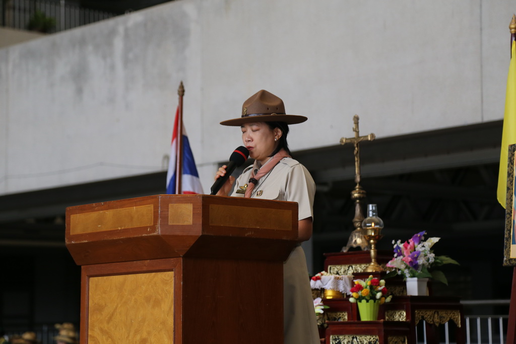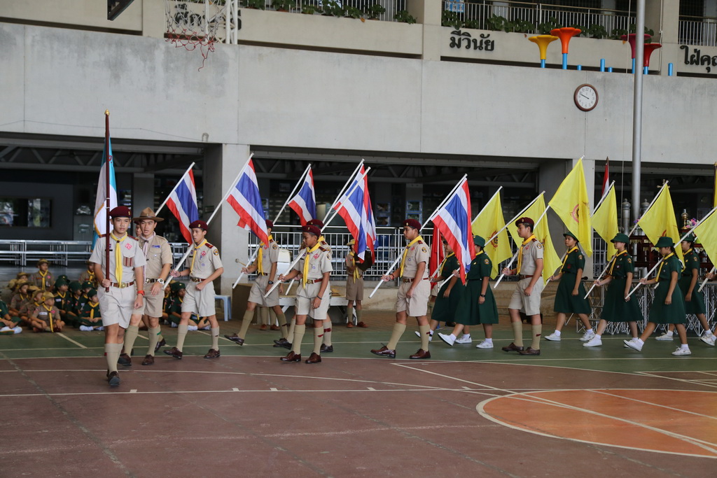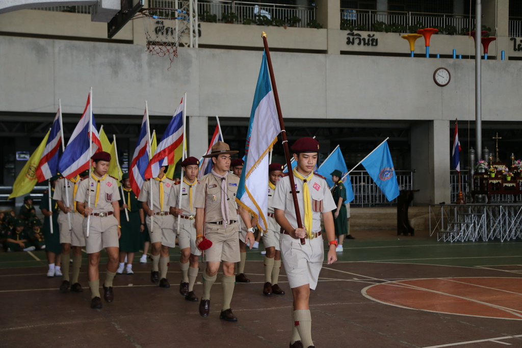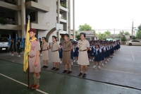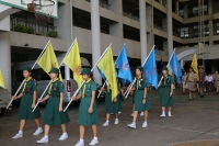 ณ สนามโรงเรียนแม่พระประจักษ์ โดยนางดวงแก้ว จันทรสูตร ผู้ช่วยผู้อำนวยการฝ่ายกิจการนักเรียน เป็นประธานในพิธี (ภาพใน Google+) |