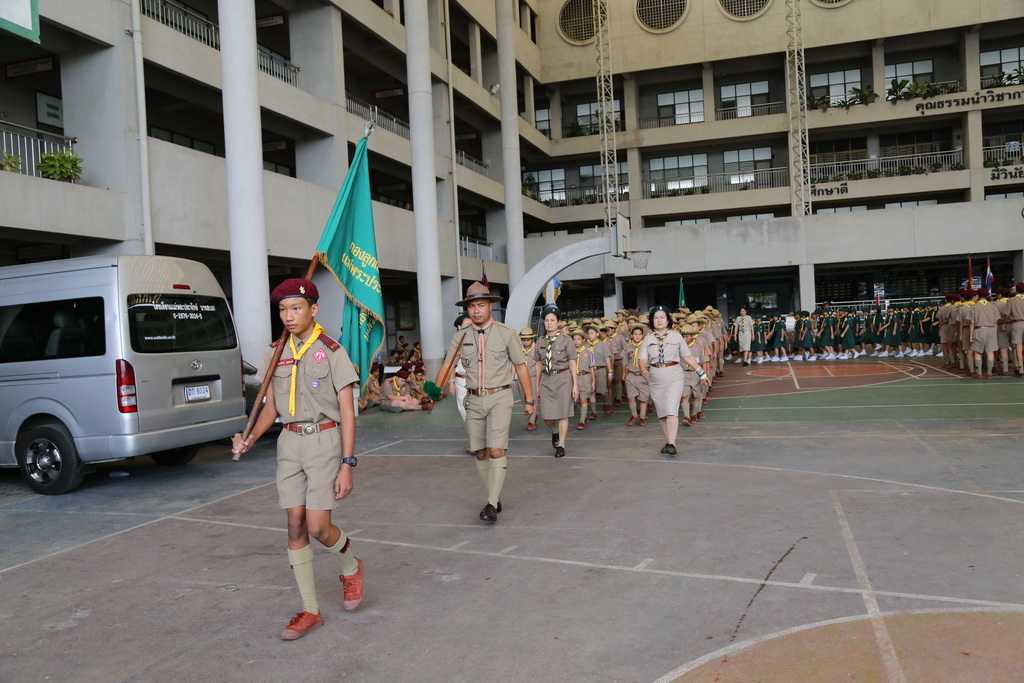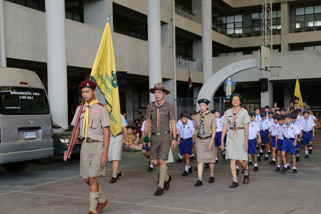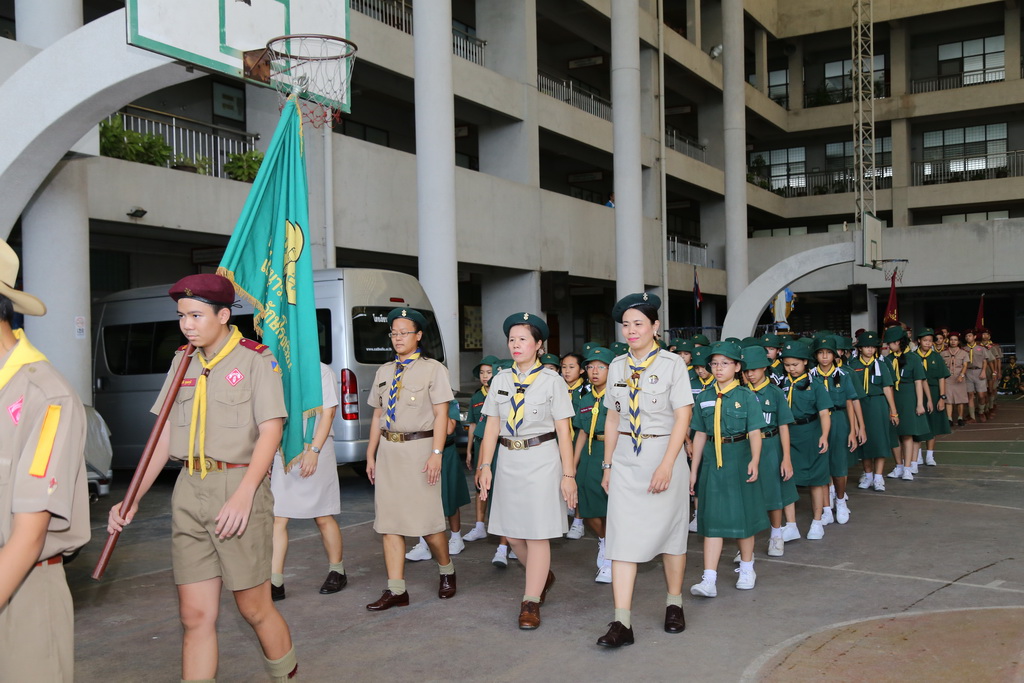 ณ สนามโรงเรียนแม่พระประจักษ์ โดยนางดวงแก้ว จันทรสูตร ผู้ช่วยผู้อำนวยการฝ่ายกิจการนักเรียน เป็นประธานในพิธี (ภาพใน Google+) |
