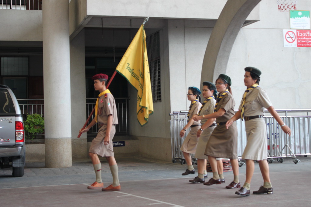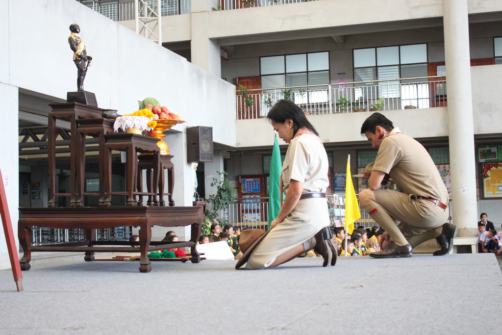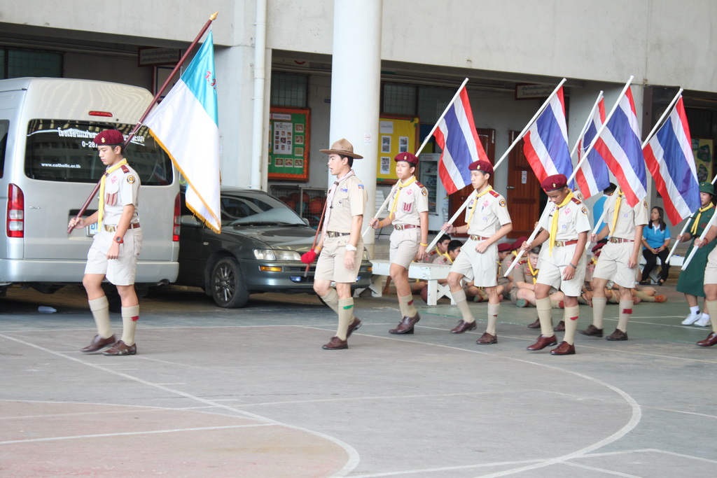 ณ สนามโรงเรียนแม่พระประจักษ์ โดยนางดวงแก้ว จันทรสูตร ผู้ช่วยผู้อำนวยการฝ่ายกิจการนักเรียน เป็นประธานในพิธี (ภาพใน Google+) |