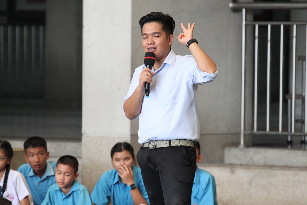 Teacher Melody และ Teacher Harold จัดกิจกรรม English Day ให้กับนักเรียนทุกวันอังคารตอนเช้า หลังเคารพธงชาติ โดยกิจกรรมในวันอังคารที่ 5 กรกฎาคม 2559 เป็นครั้งที่ 4 ได้รับความสนใจ และความร่วมมือจากนักเรียนอย่างดี |
