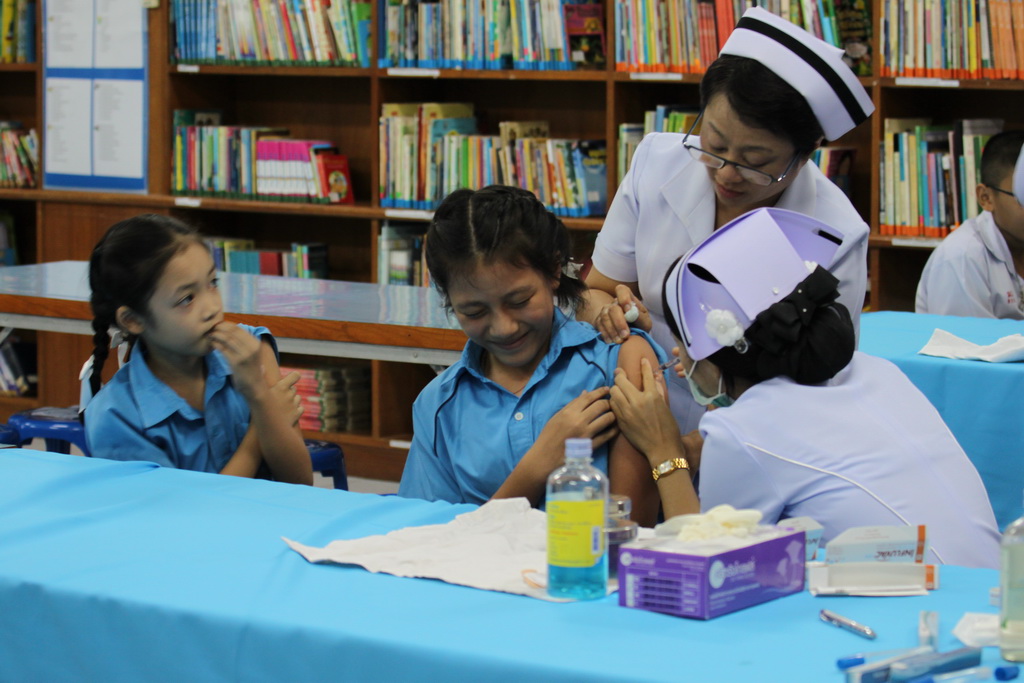 เนื่องจากการระบาดของโรคไข้หวัดใหญ่มักเกิดในช่วงฤดูฝนไปจนถึงฤดูหนาวและมักพบได้ตลอดทั้งปี และเป็นที่ทราบกันดีว่าไข้หวัดใหญ่มักมีการเปลี่ยนแปลงสายพันธุ์ ทำให้เกิดอัตราการแพร่ระบาดในจำนวนที่เพิ่มมากขึ้นทุกปี ในปีการศึกษา 2559 นี้ ทางโรงเรียนแม่พระประจักษ์ ร่วมกับ โรงพยาบาลบางประกอก 1 จักโครงการโรงเรียน สุขภาพดี เพื่อฉีดวัคซีนโรคไข้หวัดใหญ่ให้กับ ครู นักเรียน และผู้ปกครอง ในวันที่ 14 กรกฎาคม 2559 |