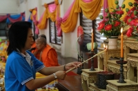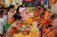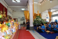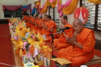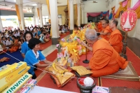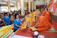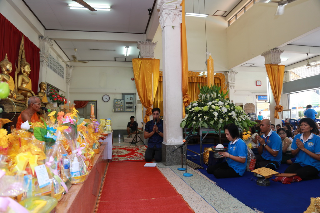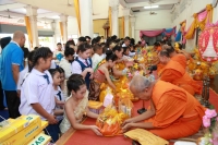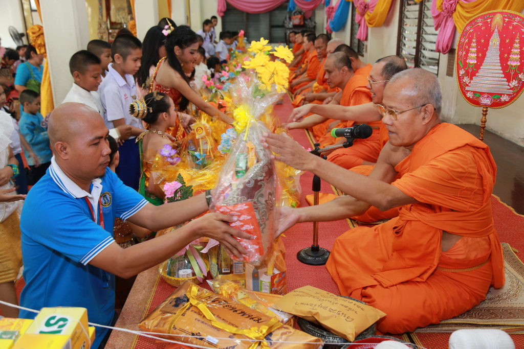 คณะผู้บริหาร ครู นักเรียน ผู้ปกครอง นำเทียนพรรษา ผ้าอาบน้ำฝน เครื่องไทยทาน และปัจจัยเป็นจำนวนเงิน 38,745.25 บาท ถวาย ณ วัดใหม่ยายนุ้ย ในวันที่ 15 กรกฎาคม 2559