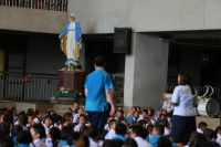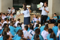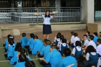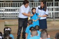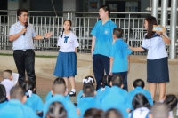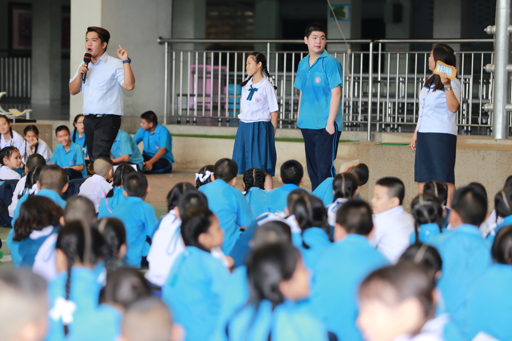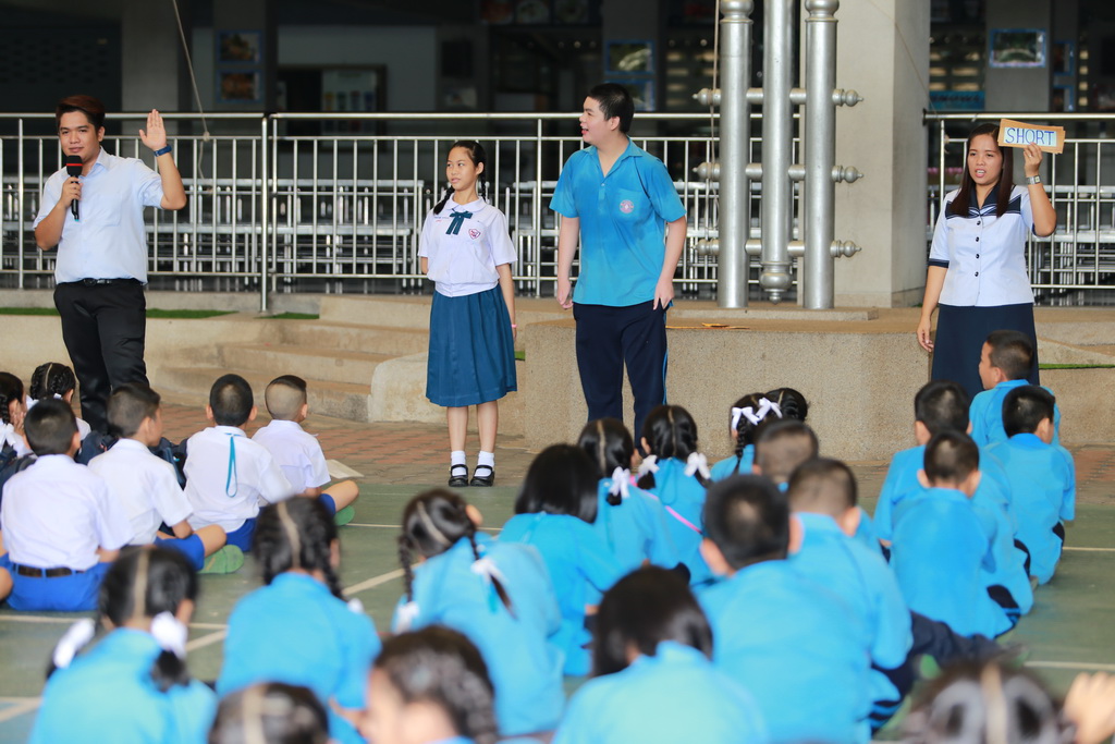 Teacher Melody และ Teacher Harold จัดกิจกรรม English Day ให้กับนักเรียนทุกวันอังคารตอนเช้า หลังเคารพธงชาติ โดยกิจกรรมในวันอังคารที่ 16 สิงหาคม 2559 เป็นครั้งที่ 5 สอนเรื่อง คำตรงข้าม ได้รับความสนใจ และความร่วมมือจากนักเรียนอย่างดี |