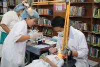 ตรวจสุขภาพฟัน และเคลื่อบฟลูออไรด์ ให้กับนักเรียน