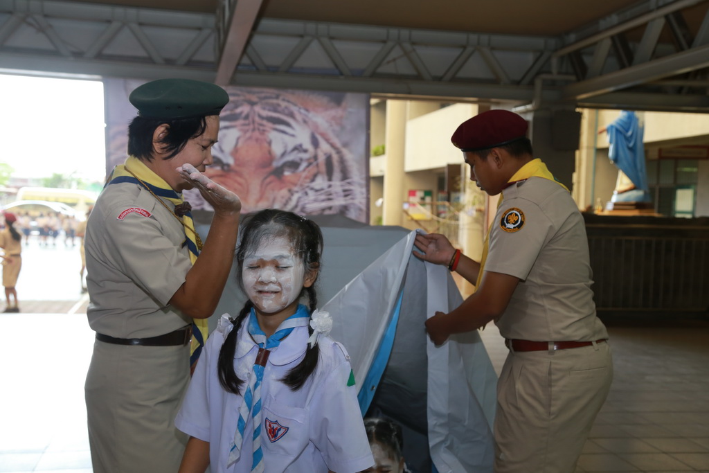วันที่ 3 ตุลาคม 2559 กิจกรรมพัฒนาผู้เรียน ฝ่ายกิจการนักเรียน ได้จัด โครงการอยู่ค่ายพักแรม ลูกเสือ-เนตรนารี ระดับชั้นประถมศึกษาปีที่ 1-3 ณ ค่ายลูกเสือชั่วคราว โรงเรียนแม่พระประจักษ์ เพื่อให้ลูกเสือ เนตรนารีมีประสบการณ์ ได้ลงมือปฎิบัติจริง เป็นการพัฒนาทางด้านร่างกาย จิตใจ และในปีนี้ คุณครูบุปผาชาติ หมุนสา ผู้อำนวยการ โรงเรียนวิชาวดี ตำบลปากน้ำโพ อำเภอเมือง จังหวัดนครสวรรค์ ได้นำนำลูกเสือ เนตรนารี ระดับชั้นประถมศึกษาปีที่ 1-3 จำนวน 20 คน และผู้กำกับลูกเสือ 6 คน เข้าร่วมกิจกรรมในครั้งนี้ด้วย |