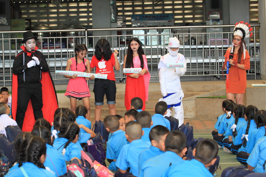 เมื่อวันพฤหัสบดีที่ 3 พฤศจิกายน 2559 ทางโรงเรียนได้จัดกิจกรรมวันฮาโลวีนขึ้น ประวัติวันฮาโลวีน สาเหตุที่วันฮาโลวีน ตรงกับวันที่ 31 ตุลาคม ของทุกปีนั้น เชื่อกันว่า เป็นวันที่ชาวเคลต์ (Celt) ซึ่งเป็นชนเผ่าพื้นเมืองเผ่าหนึ่งในไอซ์แลนด์ ถือกันว่าเป็นวันสิ้นสุดปี โดยถือกันว่าเป็นวันที่มิติคนตายและ มนุษย์จะถูกเชื่อมโยงเข้าด้วยกันและ วิญญาณผู้เสียชีวิตในปีที่ผ่านมาจะเที่ยวหาร่างของคนเพื่อสิงสู่ เพื่อที่จะได้กลับมามีชีวิตอีกครั้ง จึงทำให้คนเป็นอย่างเรา ในวันฮาโลวีนจะต้องหหาทางแก้ไขด้วยการปิดไฟในบ้านทุกดวง ให้บ้านมืดมิด ร่วมกับอากาศที่หนาวซึ่งไม่เป็นที่ปรารถนาของบรรดาผีร้าย อีกทั้งยังมีบางส่วนจะแต่งตัวเป็นผีต่างๆ เพื่อกลบเกลือนวิญญาณว่าไม่ใช่คนเป็นนั้นเอง |