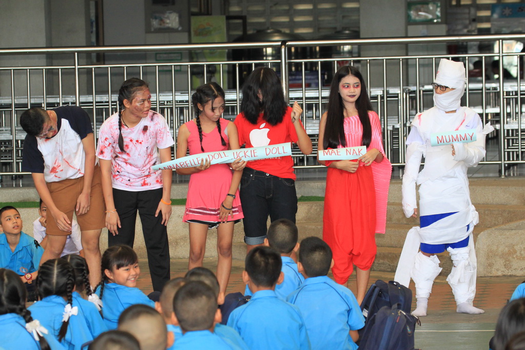 เมื่อวันพฤหัสบดีที่ 3 พฤศจิกายน 2559 ทางโรงเรียนได้จัดกิจกรรมวันฮาโลวีนขึ้น ประวัติวันฮาโลวีน สาเหตุที่วันฮาโลวีน ตรงกับวันที่ 31 ตุลาคม ของทุกปีนั้น เชื่อกันว่า เป็นวันที่ชาวเคลต์ (Celt) ซึ่งเป็นชนเผ่าพื้นเมืองเผ่าหนึ่งในไอซ์แลนด์ ถือกันว่าเป็นวันสิ้นสุดปี โดยถือกันว่าเป็นวันที่มิติคนตายและ มนุษย์จะถูกเชื่อมโยงเข้าด้วยกันและ วิญญาณผู้เสียชีวิตในปีที่ผ่านมาจะเที่ยวหาร่างของคนเพื่อสิงสู่ เพื่อที่จะได้กลับมามีชีวิตอีกครั้ง จึงทำให้คนเป็นอย่างเรา ในวันฮาโลวีนจะต้องหหาทางแก้ไขด้วยการปิดไฟในบ้านทุกดวง ให้บ้านมืดมิด ร่วมกับอากาศที่หนาวซึ่งไม่เป็นที่ปรารถนาของบรรดาผีร้าย อีกทั้งยังมีบางส่วนจะแต่งตัวเป็นผีต่างๆ เพื่อกลบเกลือนวิญญาณว่าไม่ใช่คนเป็นนั้นเอง |