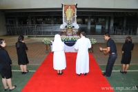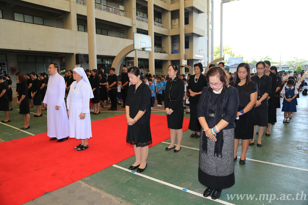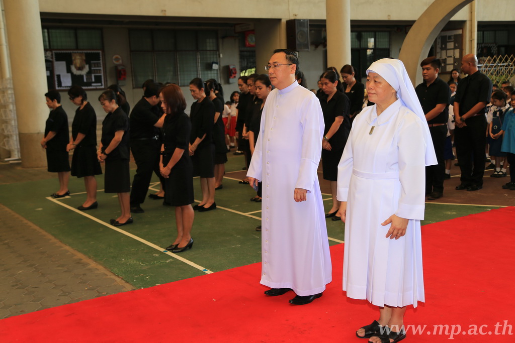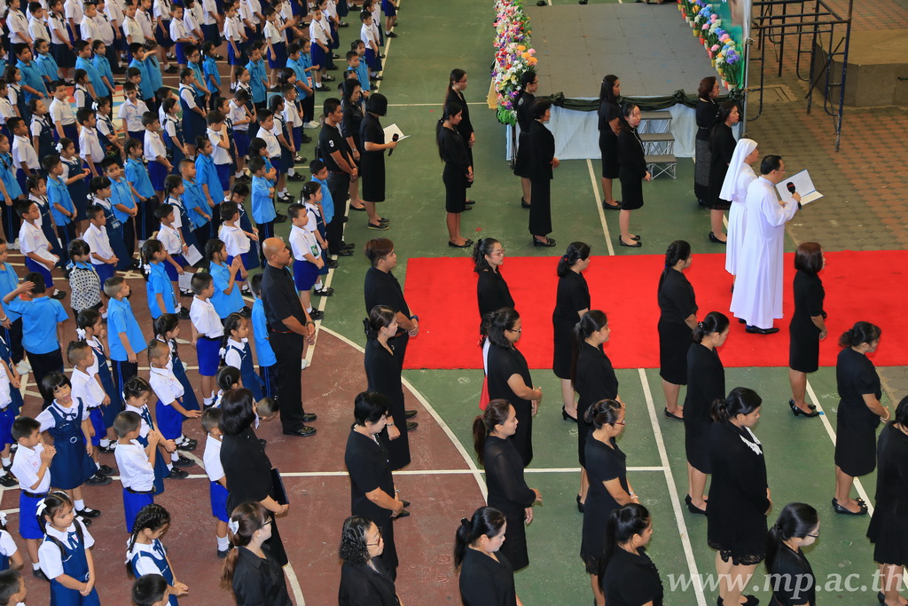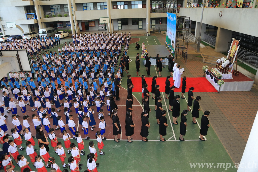วันอังคารที่ 22 พฤศจิกายน พ.ศ. 2559 เวลา 8.00 น. ณ สนามโรงเรียนแม่พระประจักษ์ คณะผู้บริหาร คณะครู เจ้าหน้าที่ ผู้ปกครอง และนักเรียนโรงเรียนแม่พระประจักษ์ จัดกิจกรรมอธิษฐาน สมาธิ สำรวมจิตภาวนา แผ่เมตตาตั้งใจทำดี เพื่อประกาศความจงรักภักดี และร่วมรำลึกถึงพระบาทสมเด็จพระปรมินทรมหาภูมิพลอดุลยเดช ในโอกาสวันคล้ายวันพระบรมราชสมภพปีที่ 89 |