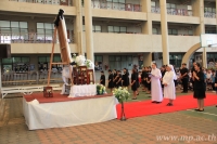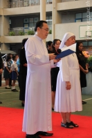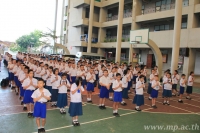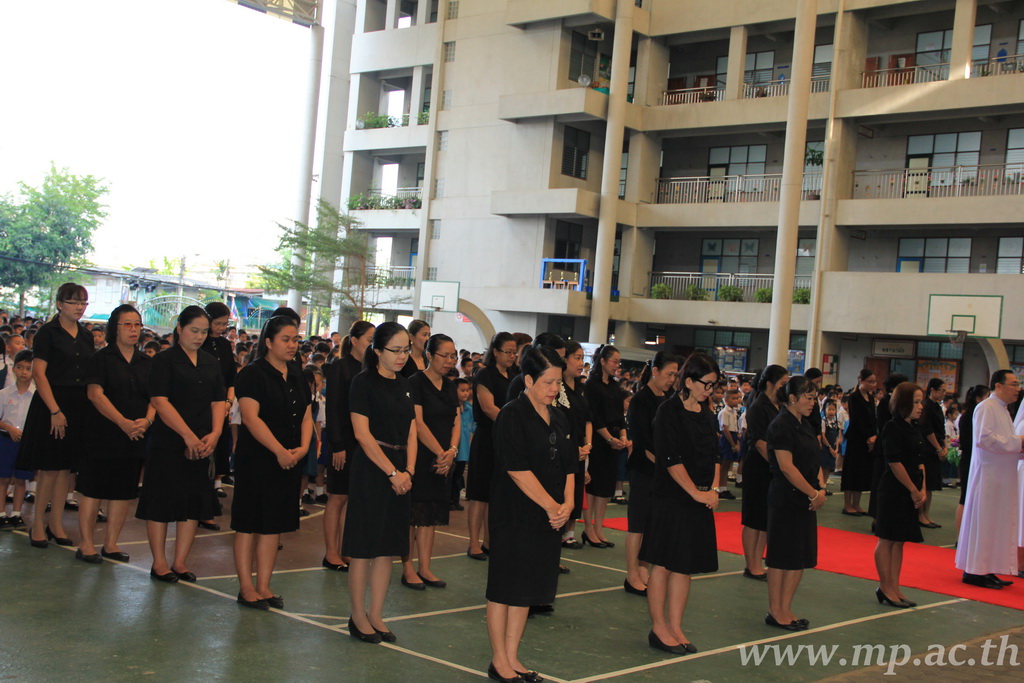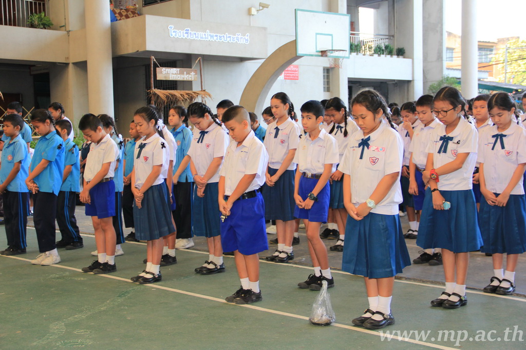 วันอังคารที่ 22 พฤศจิกายน พ.ศ. 2559 เวลา 8.00 น. ณ สนามโรงเรียนแม่พระประจักษ์ คณะผู้บริหาร คณะครู เจ้าหน้าที่ ผู้ปกครอง และนักเรียนโรงเรียนแม่พระประจักษ์ จัดกิจกรรมอธิษฐาน สมาธิ สำรวมจิตภาวนา แผ่เมตตาตั้งใจทำดี เพื่อประกาศความจงรักภักดี และร่วมรำลึกถึงพระบาทสมเด็จพระปรมินทรมหาภูมิพลอดุลยเดช ในโอกาสวันคล้ายวันพระบรมราชสมภพปีที่ 89 |