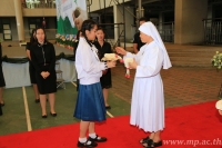วันที่ 22 พฤศจิกายน 2559 คณะครู และนักเรียนโรงเรียนแม่พระประจักษ์ ร่วมแสดงความยินดีโอกาสฉลองศาสนนาม นักบุญเซซีลีอา ซิสเตอร์ นิรมล ประสูตรแสงจันทร์ วันอังคารที่ 22 พฤศจิกายน 2559 โดยตัวแทน คณะครู นักเรียน ได้มอบของที่ระลึกให้กับซิสเตอร์ บรรยากาศเต็มไปด้วยความสดชื่นและอบอุ่น |