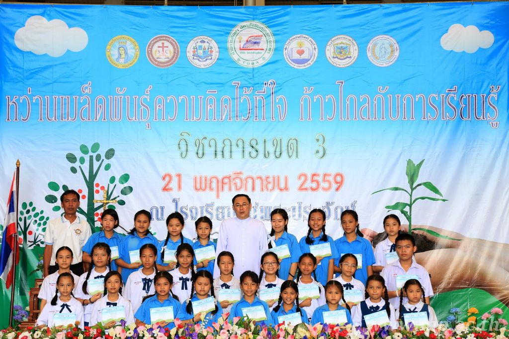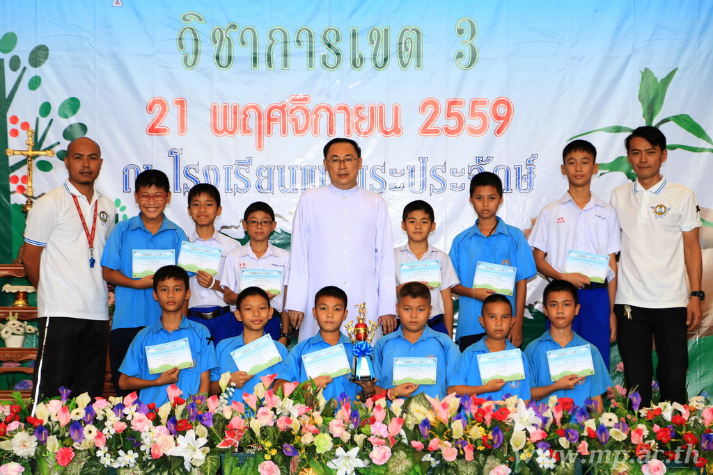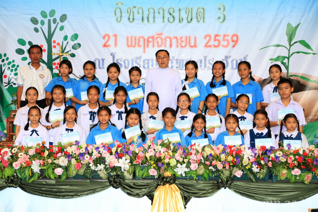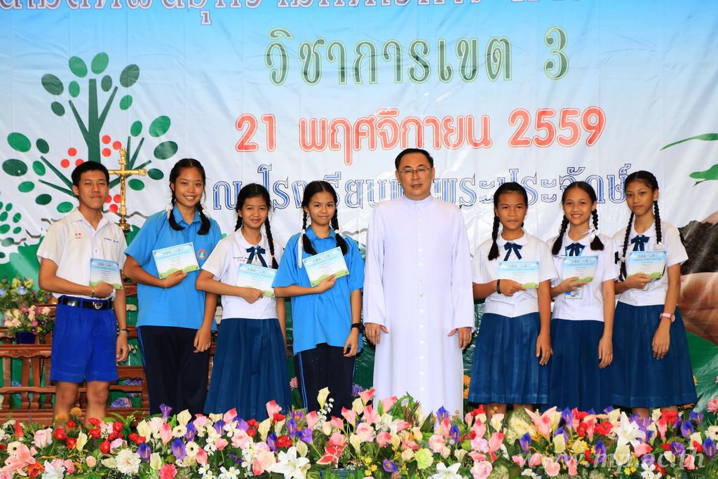 พิธีมอบเกียรติบัตร ให้กับนักเรียนที่เข้าร่วมการแข่งขันทางวิชาการ ในงานวันวิชาการเขตการศึกษาที่ 3 "หว่านเมล็ดพันธุความคิดไว้ที่ใจ ก้าวไกลกับการเรียนรู้" วันที่ 21 พฤศจิกายน 2559 โดยบาทหลวงอนุศักดิ์ กิจบำรุง เป็นผู้มอบ ในวันที่ 24 พฤศจิกายน 2559