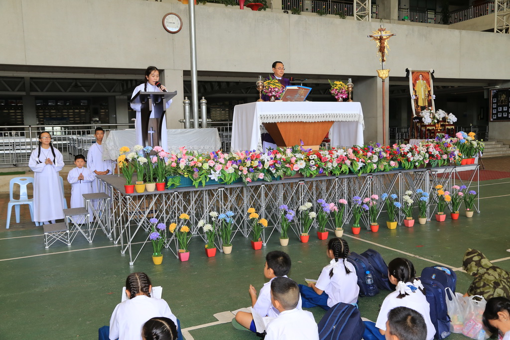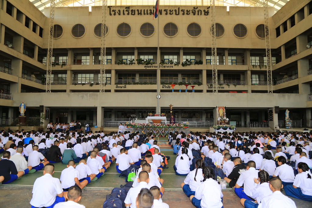 คณะผู้บริหาร ครู เจ้าหน้าที่ ผู้ปกครอง นักเรียน โรงเรียนแม่พระประจักษ์ ร่วมพิธีมิสซาบูชาขอบพระคุณ บำเพ็ญพระราชกุศลปัญญาสมวาร 50 ถวาย แด่พระบาทสมเด็จพระปรมินทรมหาภูมิพลอดุลยเดช มหิตลาธิเบศรามาธิบดี จักกรีนฤบดินทร สยามมินทราธิราชบรมนาถบพิตร และทำบุญตักบาตรข้าวสารอาหารแห้ง ณ วัดนางนองวรวหาร ในวันที่ 2 ธันวาคม 2559 |