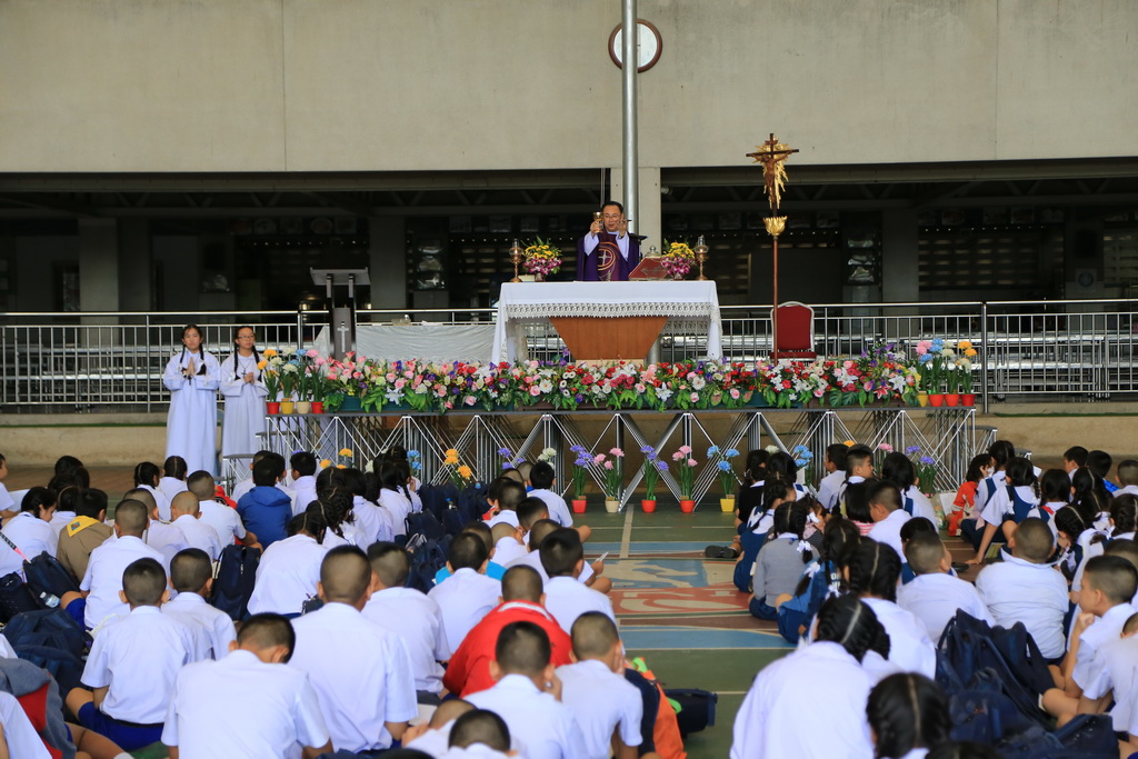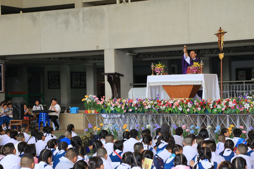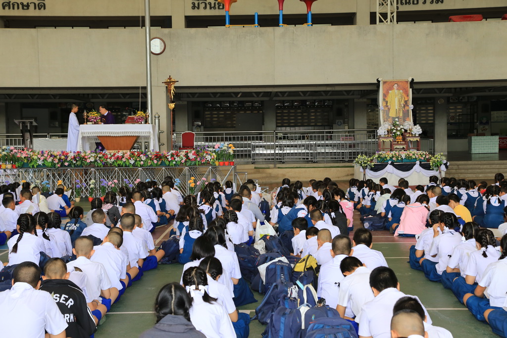 คณะผู้บริหาร ครู เจ้าหน้าที่ ผู้ปกครอง นักเรียน โรงเรียนแม่พระประจักษ์ ร่วมพิธีมิสซาบูชาขอบพระคุณ บำเพ็ญพระราชกุศลปัญญาสมวาร 50 ถวาย แด่พระบาทสมเด็จพระปรมินทรมหาภูมิพลอดุลยเดช มหิตลาธิเบศรามาธิบดี จักกรีนฤบดินทร สยามมินทราธิราชบรมนาถบพิตร และทำบุญตักบาตรข้าวสารอาหารแห้ง ณ วัดนางนองวรวหาร ในวันที่ 2 ธันวาคม 2559 |