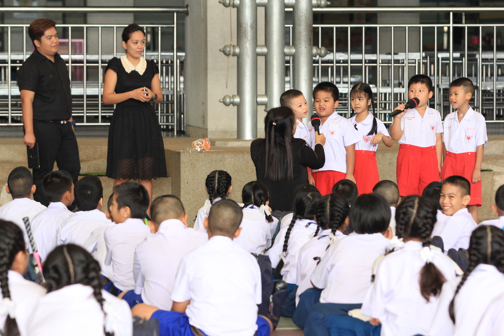 Teacher Melody และ Teacher Harold จัดกิจกรรม English Day ให้กับนักเรียนทุกวันอังคารตอนเช้า หลังเคารพธงชาติ โดยกิจกรรมในวันอังคารที่ 6 ธันวาคม 2559 สอนเรื่อง คำศัพท์ และประโยคต่างๆ ในภาษาอังกฤษ ได้รับความสนใจ และความร่วมมือจากนักเรียนอย่างดี |