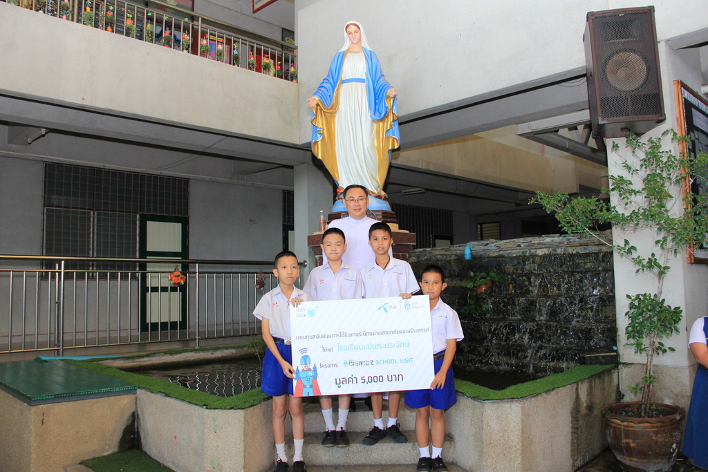 บริษัท โทเทิ่ล แอ็คแซ็ส คอมมูนิเคชั่น จำกัด (มหาชน) หรือ "ดีแทค" โครงการ Safe Internet อย่างต่อเนื่อง โดยเปิดตัวกิจกรรม dtac Digikidz School Visit 2016 ผ่านรูปแบบ Edutainment ที่ให้ความรู้ และการปลูกฝังให้เด็กในวัยประถมศึกษารู้ถึงการใช้อินเทอร์เน็ตอย่างปลอดภัย และสร้างสรรค์ โดยคัดเลือกผลงานของนักเรียนที่ส่งผลงานเข้าประกวด เพื่อรับทุนการศึกษา จำนวน 4 ทุนๆ ละ 2,000 บาท ได้แก่ เด็กชายนราธิป ฉาบครบุรี ชั้นประถมศึกษาปีที่ 5/3 , เด็กชายปิยธนา กองจรัญจิตต์ ชั้นประถมศึกษาปีที่ 6/3, เด็กชายธนากร หมวดเหล็ก ชั้นประถมศึกษาปีที่ 6/3, และเด็กชายณัฐพนธ์ จำนงสุทธเสถียร ชั้นประถมศึกษาปีที่ 6/2 และมอบทุนการใช้อินเตอร์เน็ตอย่างปลอดภัย และสร้างสรรค์ให้กับทาง โรงเรียนแม่พระประจักษ์ เป็นจำนวน 5,000 บาท |