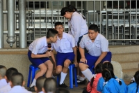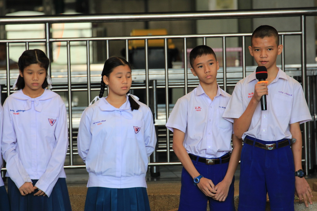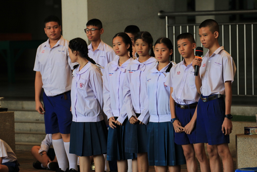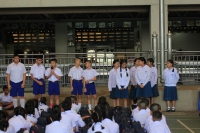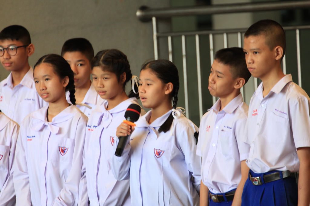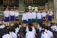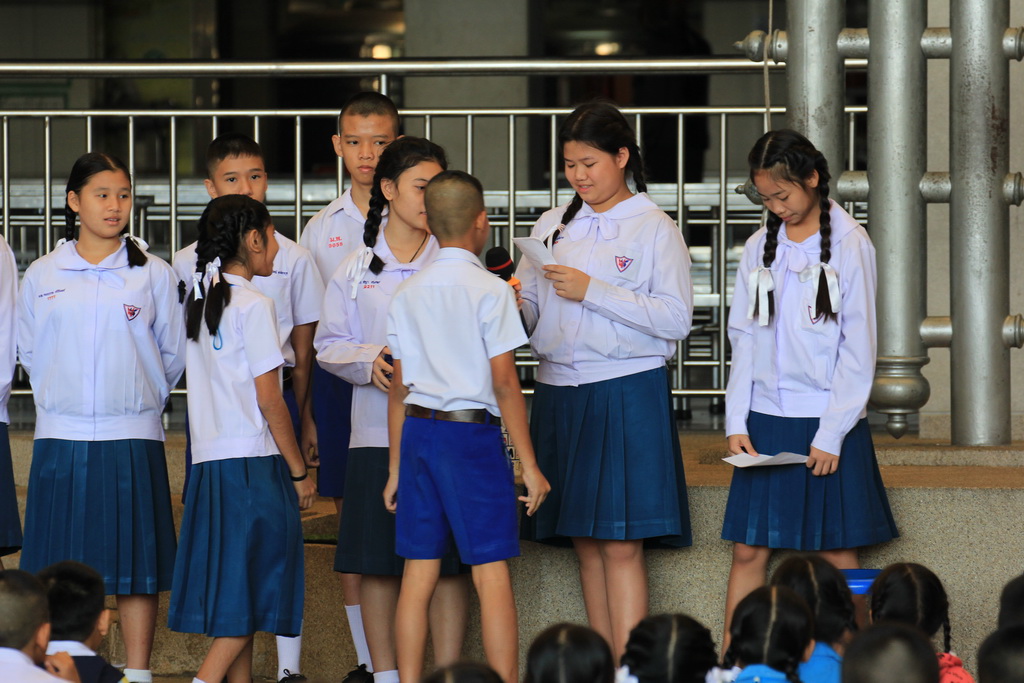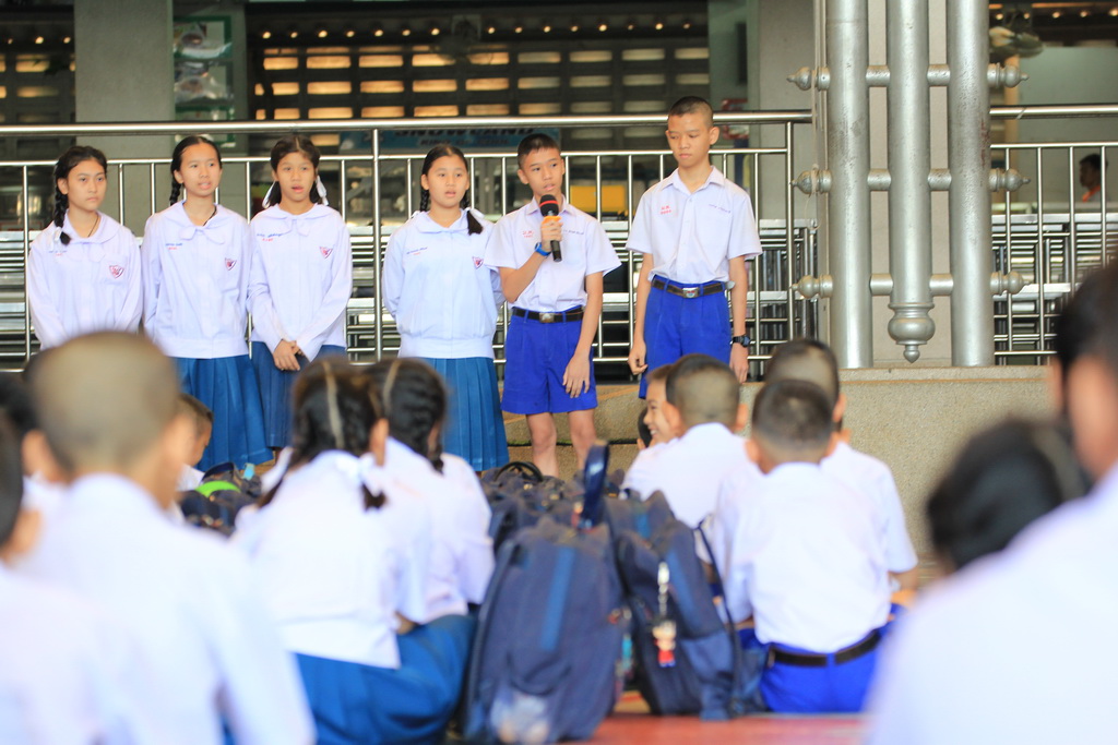วันอังคารที่ 7 กุมภาพันธ์ 2560 คุณครูพัชรีญา ได้จัดกิจกรรมหน้าเสาธงหลังเคารพธงชาติ ให้กับนักเรียนได้เรียนรู้ ฟัง พูด ภาษาจีนในวันนี้มีตัวแทนนักเรียนระดับชั้นมัธยมศึกษาปีที่ 1/1 มาให้ความรู้กับนักเรียนรุ่นน้อง และรุ่นพี่ วันนี้เรียนรู้คำศัพท์ และประโยคในภาษาจีน เกี่ยวกับการพูดทักทาย สนทนา ได้รับความสนใจเป็นอย่างดี |