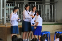 วันอังคารที่ 7 กุมภาพันธ์ 2560 คุณครูพัชรีญา ได้จัดกิจกรรมหน้าเสาธงหลังเคารพธงชาติ ให้กับนักเรียนได้เรียนรู้ ฟัง พูด ภาษาจีนในวันนี้มีตัวแทนนักเรียนระดับชั้นมัธยมศึกษาปีที่ 1/1 มาให้ความรู้กับนักเรียนรุ่นน้อง และรุ่นพี่ วันนี้เรียนรู้คำศัพท์ และประโยคในภาษาจีน เกี่ยวกับการพูดทักทาย สนทนา ได้รับความสนใจเป็นอย่างดี |