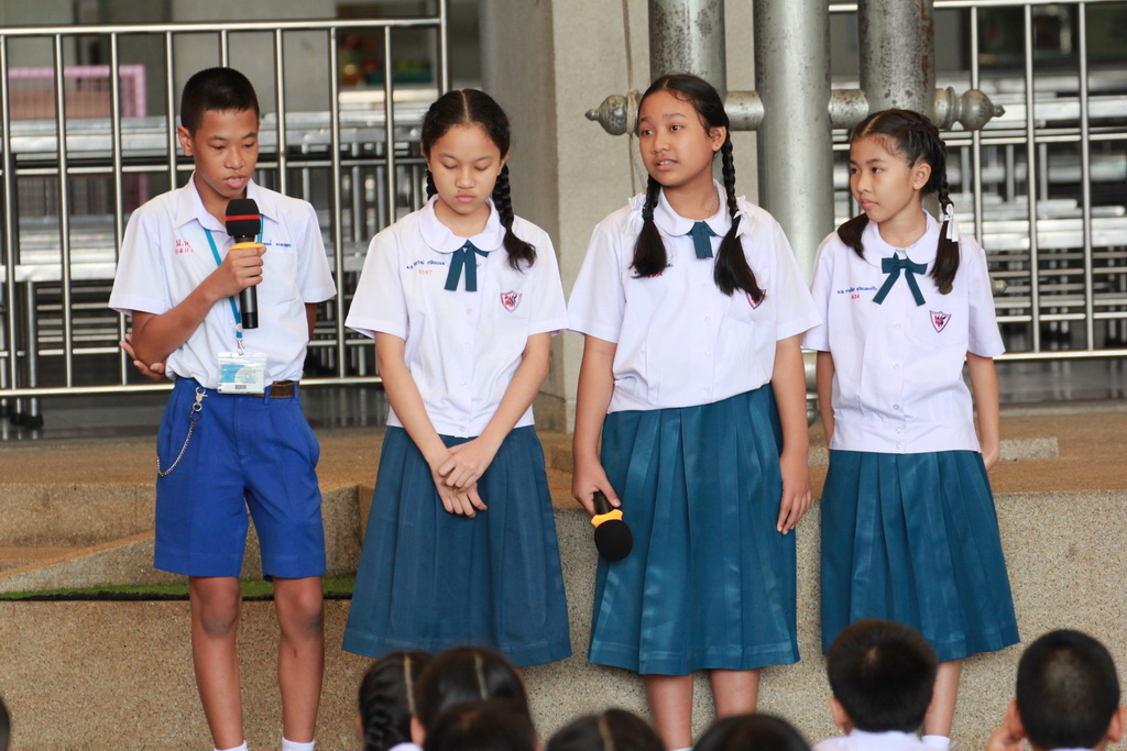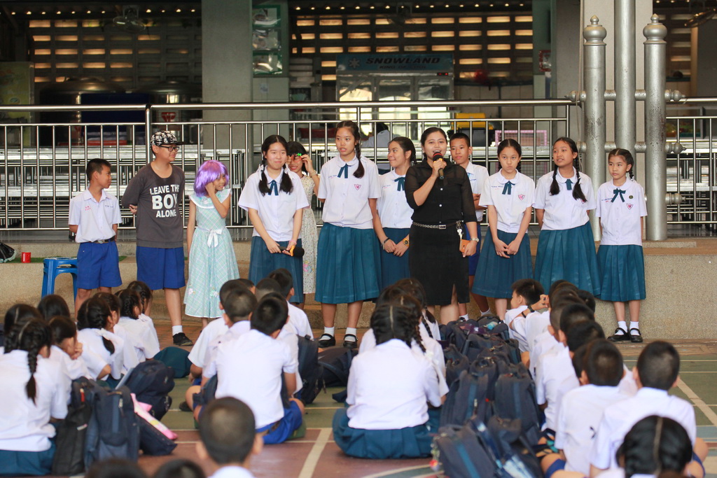 วันอังคารที่ 21 กุมภาพันธ์ 2560 คุณครูพัชรีญา ได้จัดกิจกรรมหน้าเสาธงหลังเคารพธงชาติ ให้กับนักเรียนได้เรียนรู้ ฟัง พูด ภาษาจีนในวันนี้มีตัวแทนนักเรียน มาให้ความรู้กับนักเรียนรุ่นน้อง และรุ่นพี่ วันนี้เรียนรู้คำศัพท์ และประโยคในภาษาจีน เกี่ยวกับการจีบสาวๆ สนทนา ได้รับความสนใจเป็นอย่างดี |