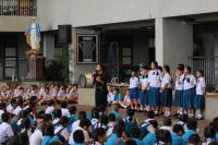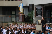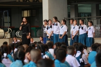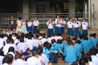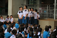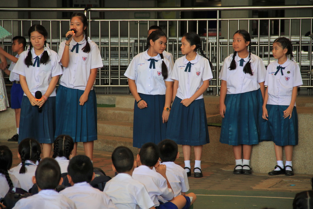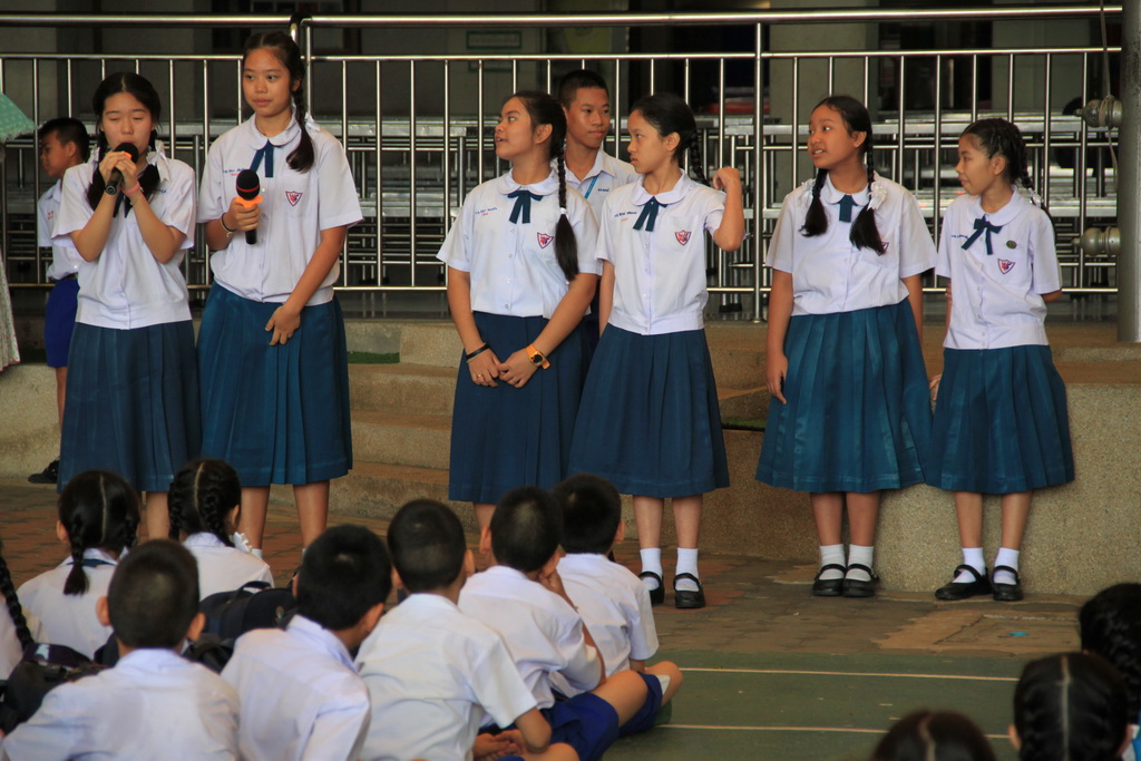 วันอังคารที่ 21 กุมภาพันธ์ 2560 คุณครูพัชรีญา ได้จัดกิจกรรมหน้าเสาธงหลังเคารพธงชาติ ให้กับนักเรียนได้เรียนรู้ ฟัง พูด ภาษาจีนในวันนี้มีตัวแทนนักเรียน มาให้ความรู้กับนักเรียนรุ่นน้อง และรุ่นพี่ วันนี้เรียนรู้คำศัพท์ และประโยคในภาษาจีน เกี่ยวกับการจีบสาวๆ สนทนา ได้รับความสนใจเป็นอย่างดี |