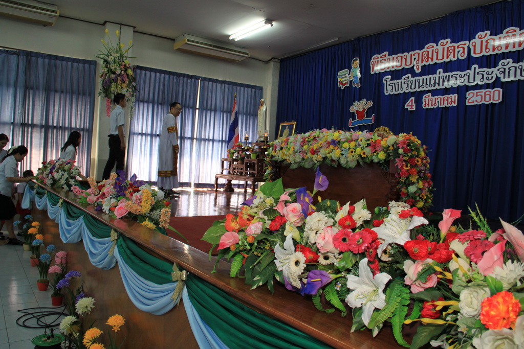 เมื่อวันที่ 4 มีนาคม 2560 ทางโรงเรียนแม่พระประจักษ์ได้จัดพิธีมอบวุฒิบัตร บัณฑิตน้อย ให้กับนักเรียนชั้นอนุบาล 3 ปีการศึกษา 2559 ณ ห้องประชุมชั้น 5 โรงเรียนแม่พระประจักษ์ |