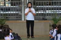 ทุกเช้าคุณพ่ออนุศักดิ์ กิจเจริญ ผู้อำนวยการ และคณะครู โรงเรียนแม่พระประจักษ์ ให้การอบรม ทำความเข้าใจในเรื่องต่างๆ และแบ่งปันประสบการณ์ ให้กับนักเรียนหลังเคารพธงชาติ