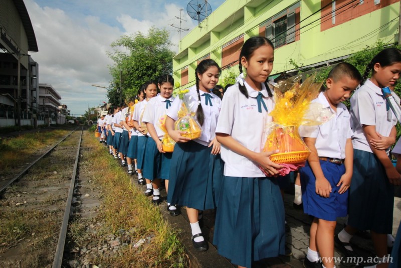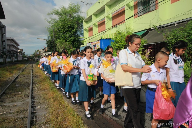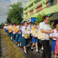 คณะผู้บริหาร ครู นักเรียน ผู้ปกครอง นำเทียนพรรษา ผ้าอาบน้ำฝน เครื่องไทยทาน และปัจจัยเป็นจำนวนเงิน 41,513.25 บาท ถวาย ณ วัดใหม่ยายนุ้ย ในวันที่ 15 กรกฎาคม 2559