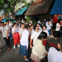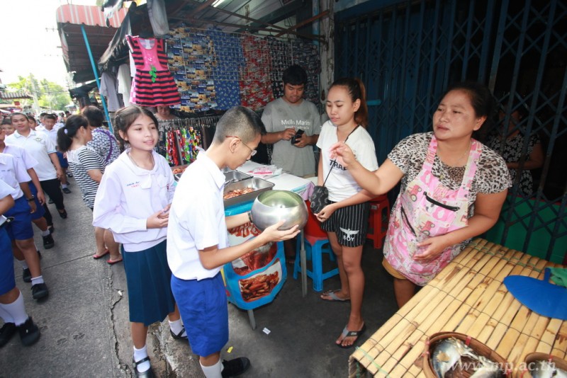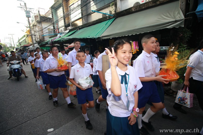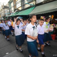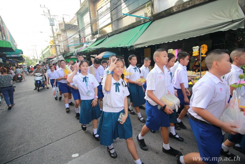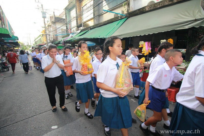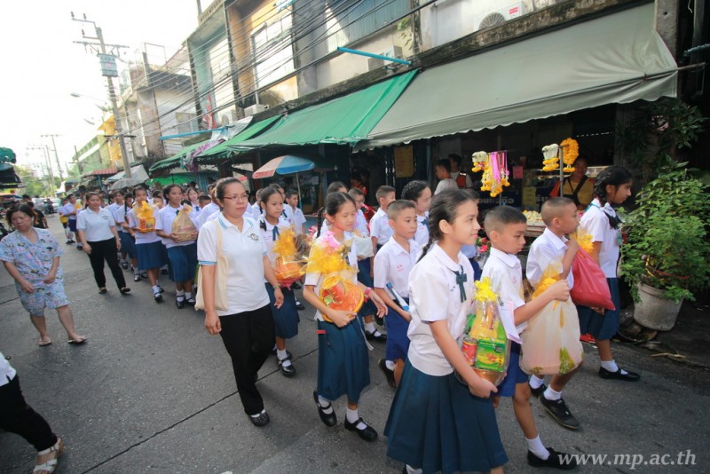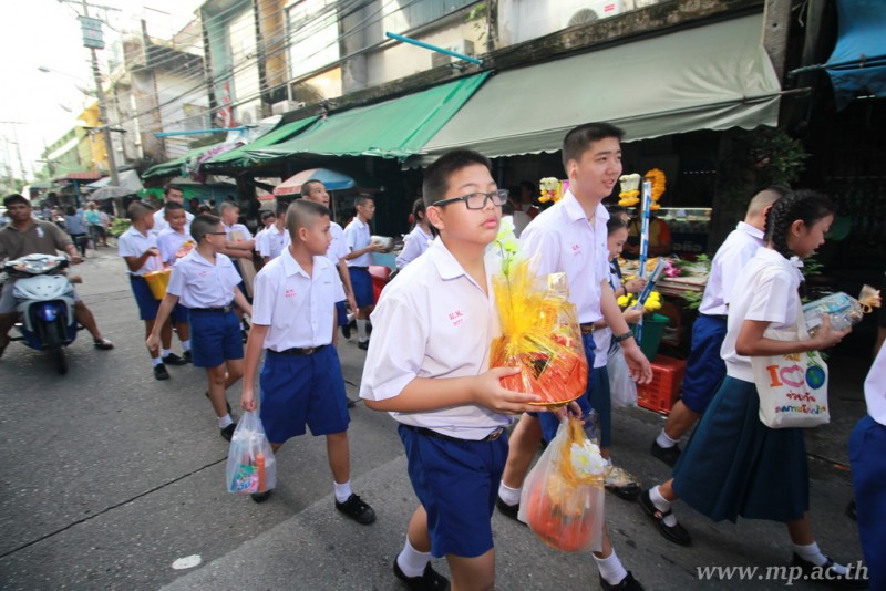 คณะผู้บริหาร ครู นักเรียน ผู้ปกครอง นำเทียนพรรษา ผ้าอาบน้ำฝน เครื่องไทยทาน และปัจจัยเป็นจำนวนเงิน 41,513.25 บาท ถวาย ณ วัดใหม่ยายนุ้ย ในวันที่ 15 กรกฎาคม 2559