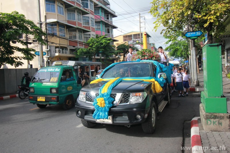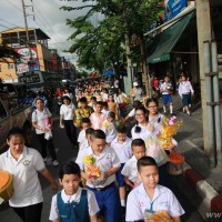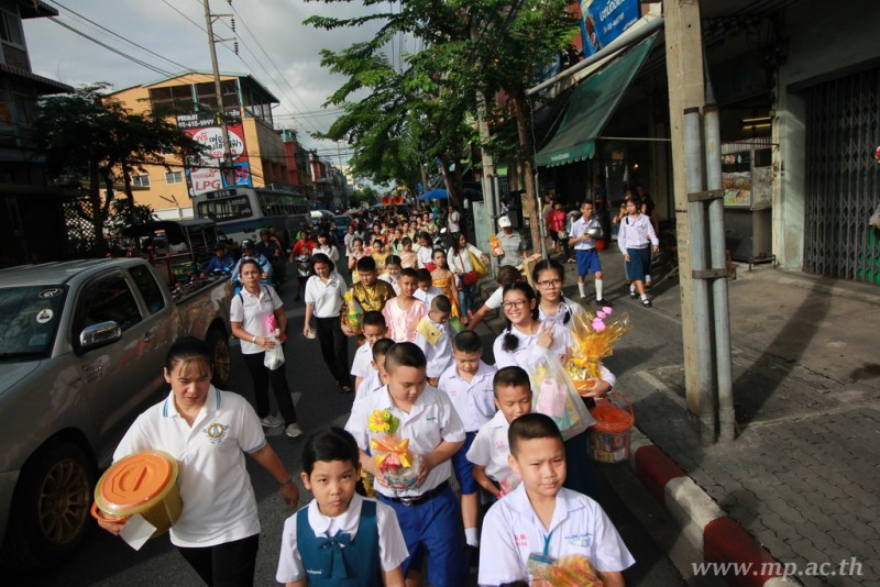 คณะผู้บริหาร ครู นักเรียน ผู้ปกครอง นำเทียนพรรษา ผ้าอาบน้ำฝน เครื่องไทยทาน และปัจจัยเป็นจำนวนเงิน 41,513.25 บาท ถวาย ณ วัดใหม่ยายนุ้ย ในวันที่ 15 กรกฎาคม 2559