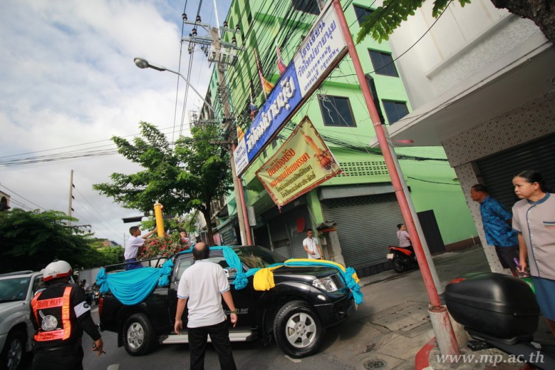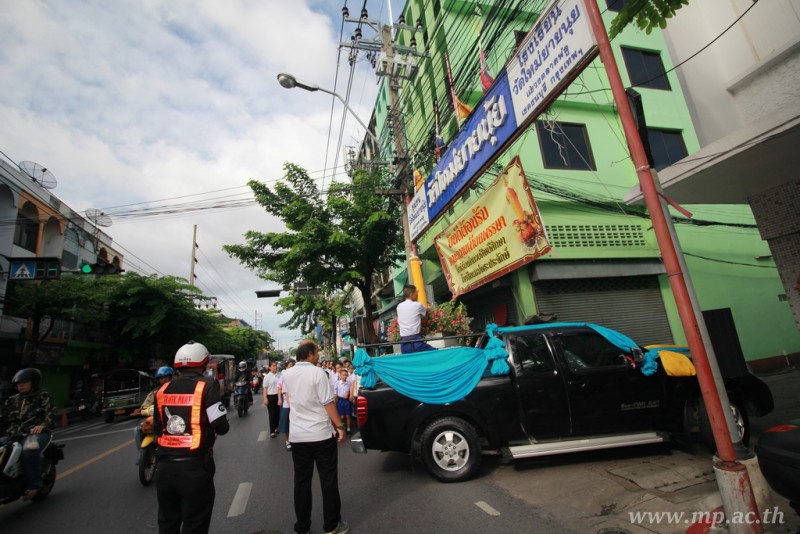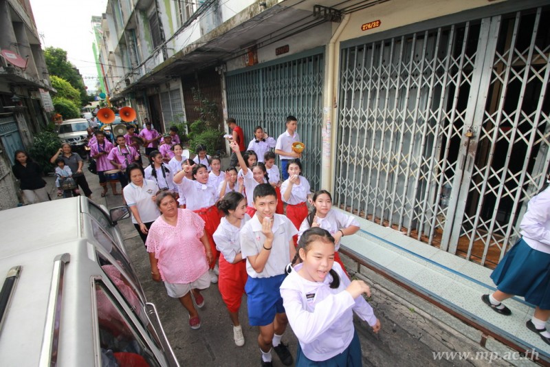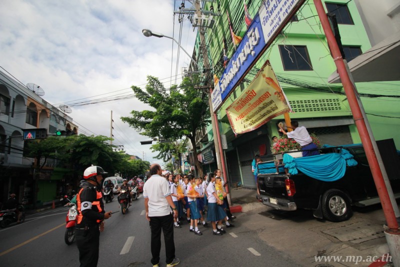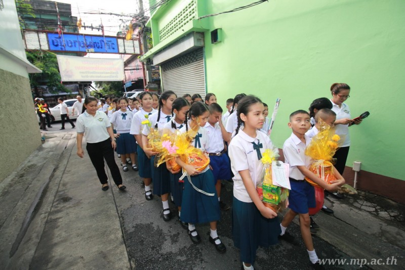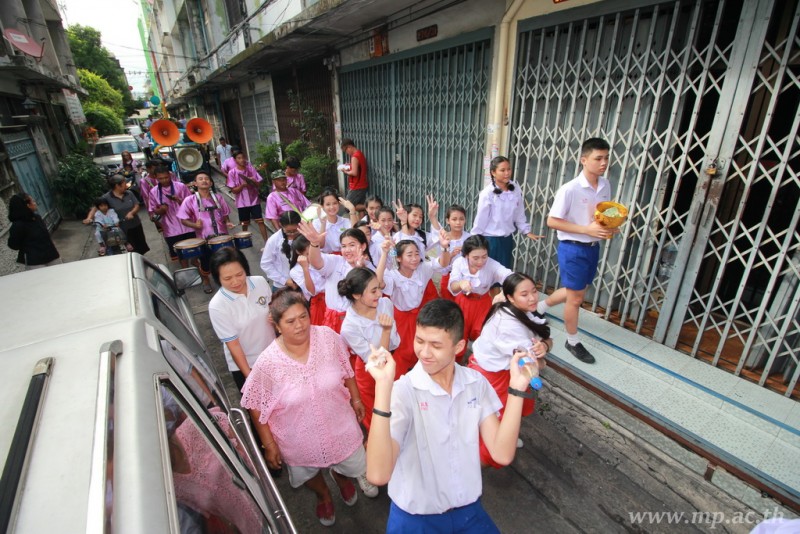 คณะผู้บริหาร ครู นักเรียน ผู้ปกครอง นำเทียนพรรษา ผ้าอาบน้ำฝน เครื่องไทยทาน และปัจจัยเป็นจำนวนเงิน 41,513.25 บาท ถวาย ณ วัดใหม่ยายนุ้ย ในวันที่ 15 กรกฎาคม 2559