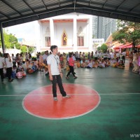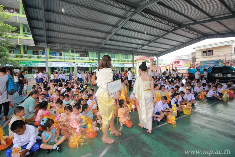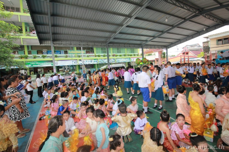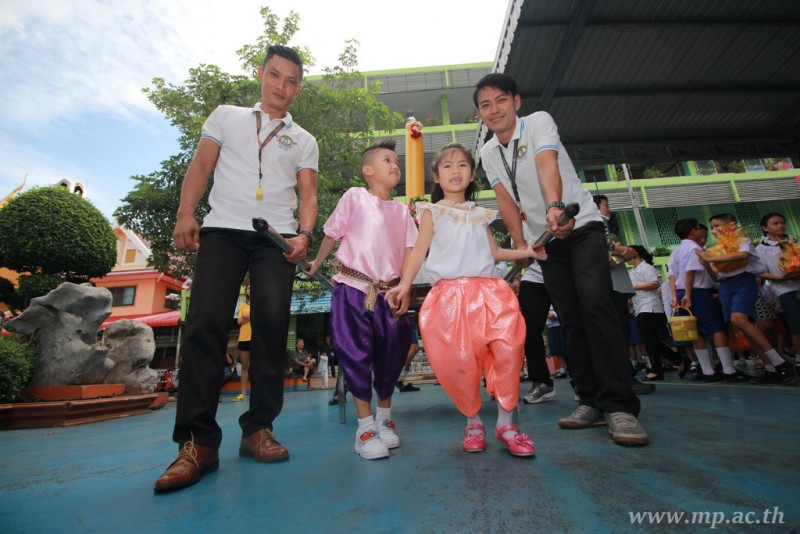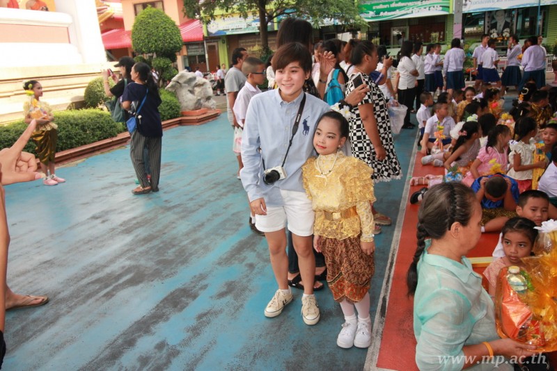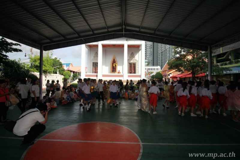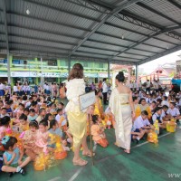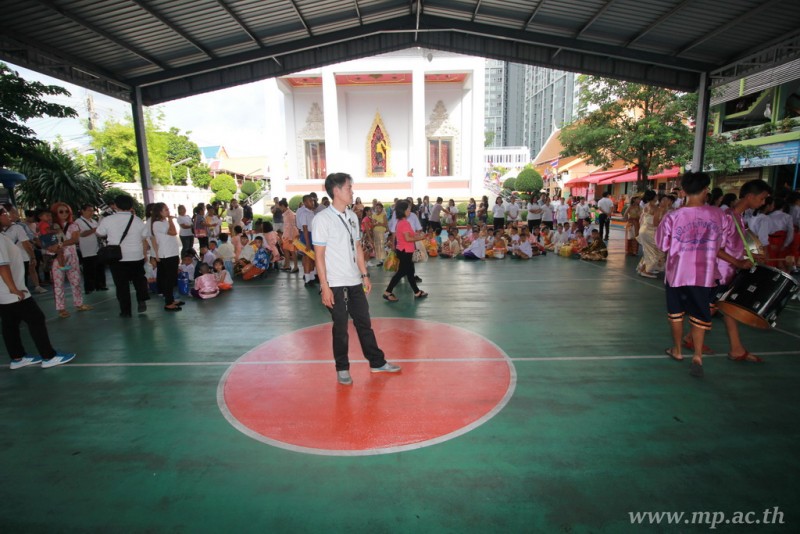 คณะผู้บริหาร ครู นักเรียน ผู้ปกครอง นำเทียนพรรษา ผ้าอาบน้ำฝน เครื่องไทยทาน และปัจจัยเป็นจำนวนเงิน 41,513.25 บาท ถวาย ณ วัดใหม่ยายนุ้ย ในวันที่ 15 กรกฎาคม 2559