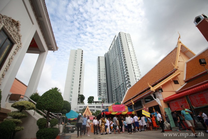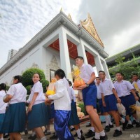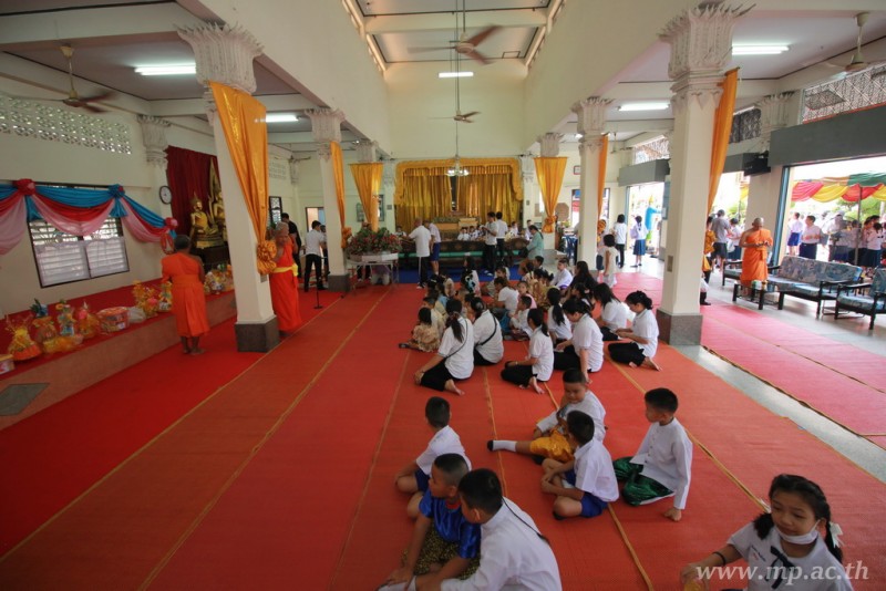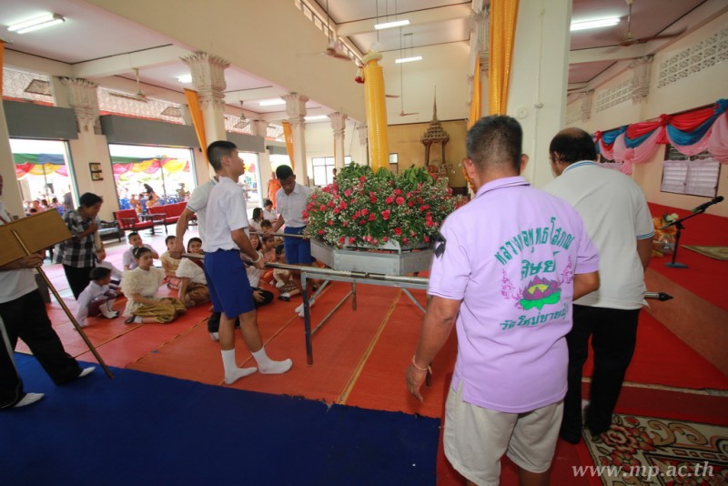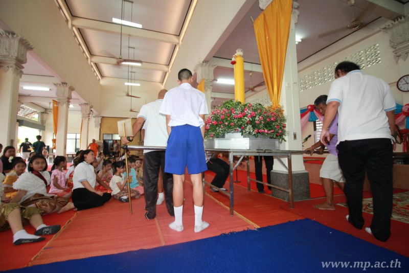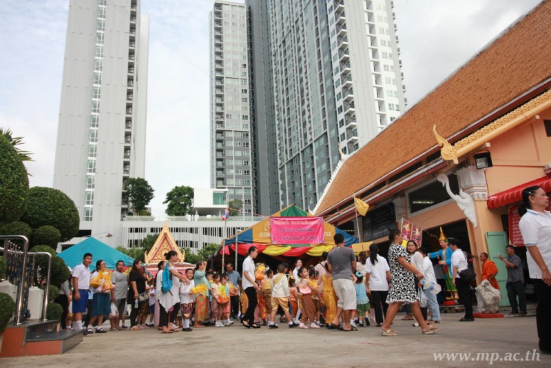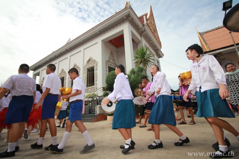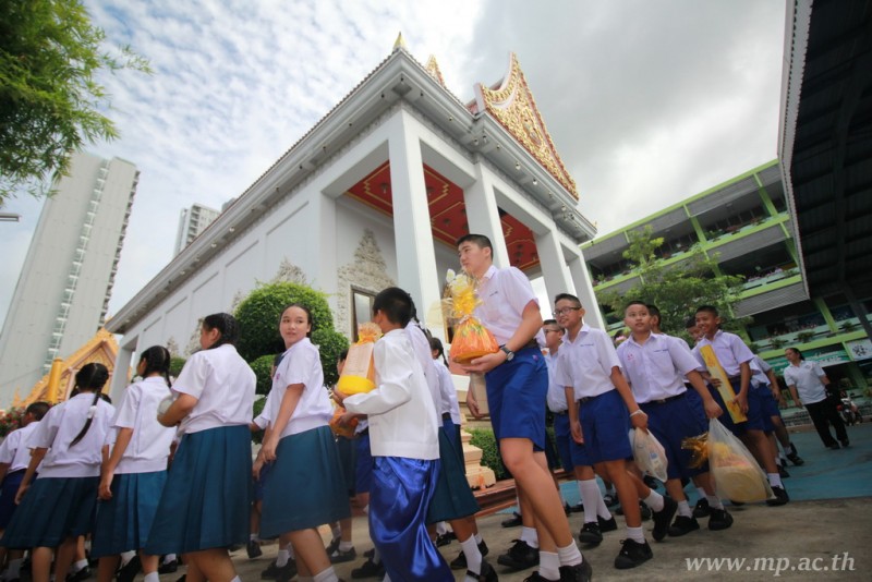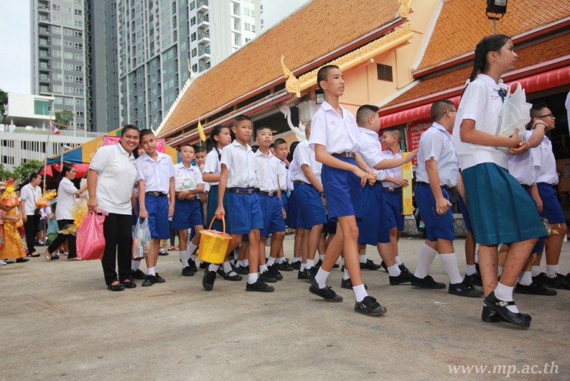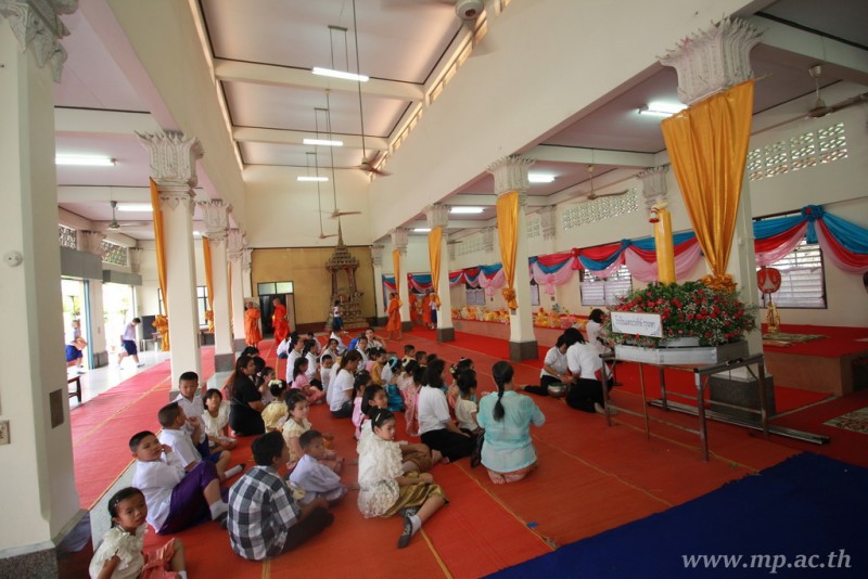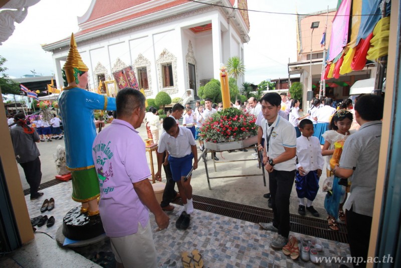 คณะผู้บริหาร ครู นักเรียน ผู้ปกครอง นำเทียนพรรษา ผ้าอาบน้ำฝน เครื่องไทยทาน และปัจจัยเป็นจำนวนเงิน 41,513.25 บาท ถวาย ณ วัดใหม่ยายนุ้ย ในวันที่ 15 กรกฎาคม 2559