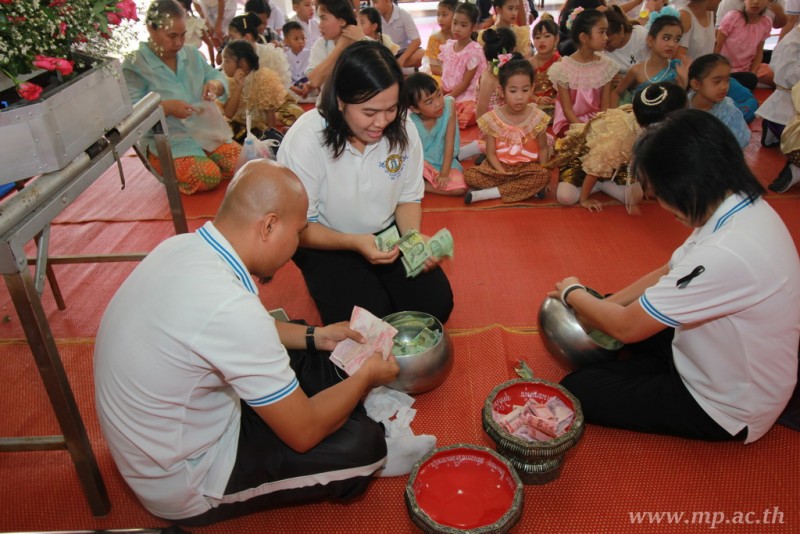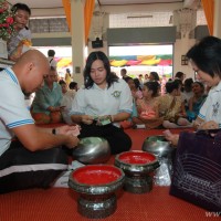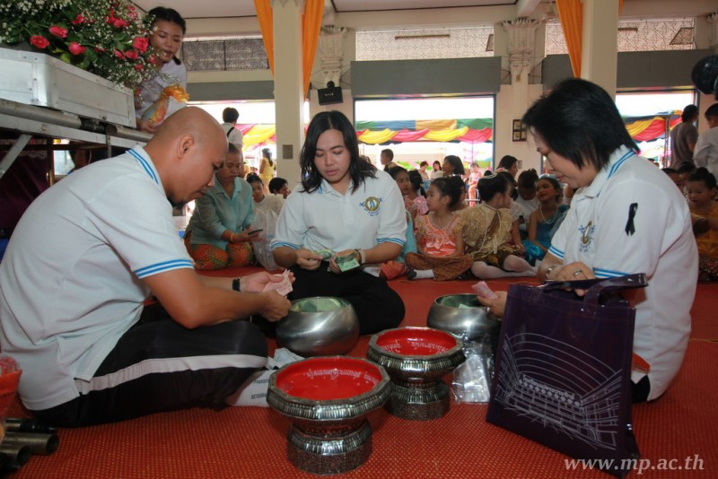 คณะผู้บริหาร ครู นักเรียน ผู้ปกครอง นำเทียนพรรษา ผ้าอาบน้ำฝน เครื่องไทยทาน และปัจจัยเป็นจำนวนเงิน 41,513.25 บาท ถวาย ณ วัดใหม่ยายนุ้ย ในวันที่ 15 กรกฎาคม 2559