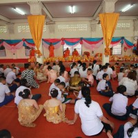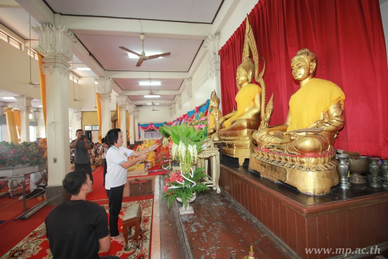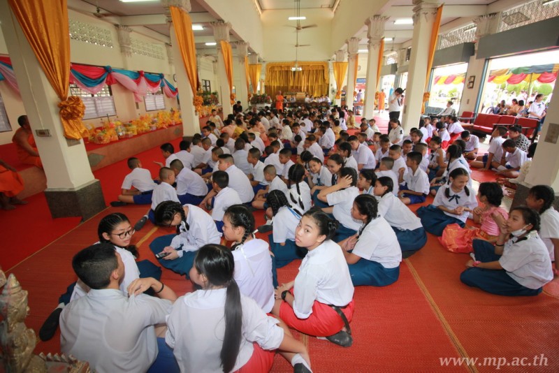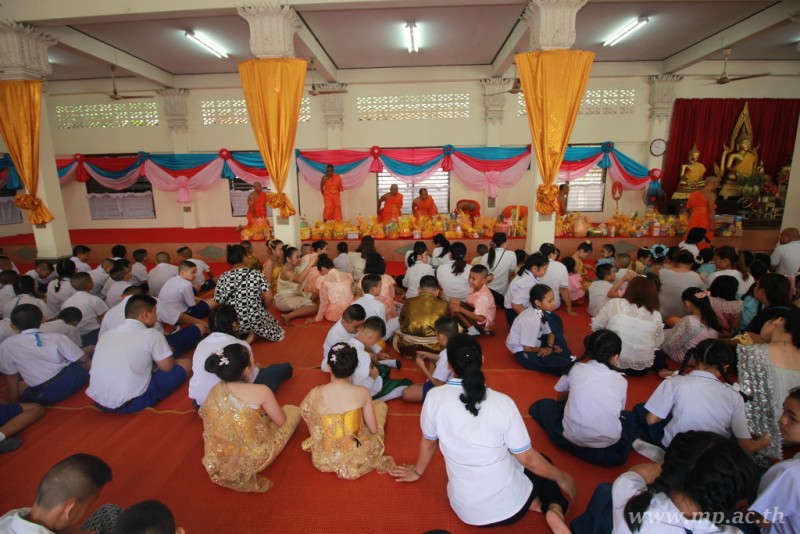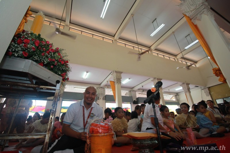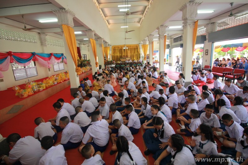 คณะผู้บริหาร ครู นักเรียน ผู้ปกครอง นำเทียนพรรษา ผ้าอาบน้ำฝน เครื่องไทยทาน และปัจจัยเป็นจำนวนเงิน 41,513.25 บาท ถวาย ณ วัดใหม่ยายนุ้ย ในวันที่ 15 กรกฎาคม 2559
