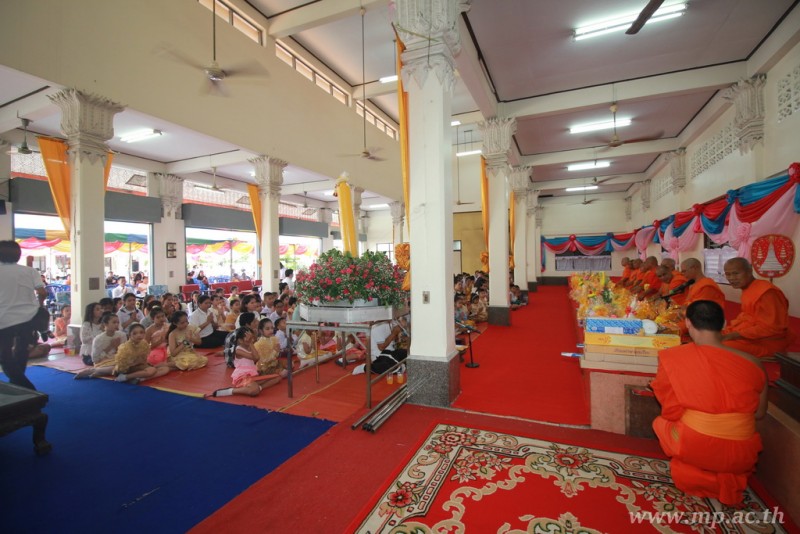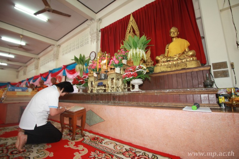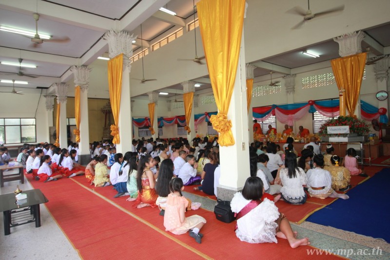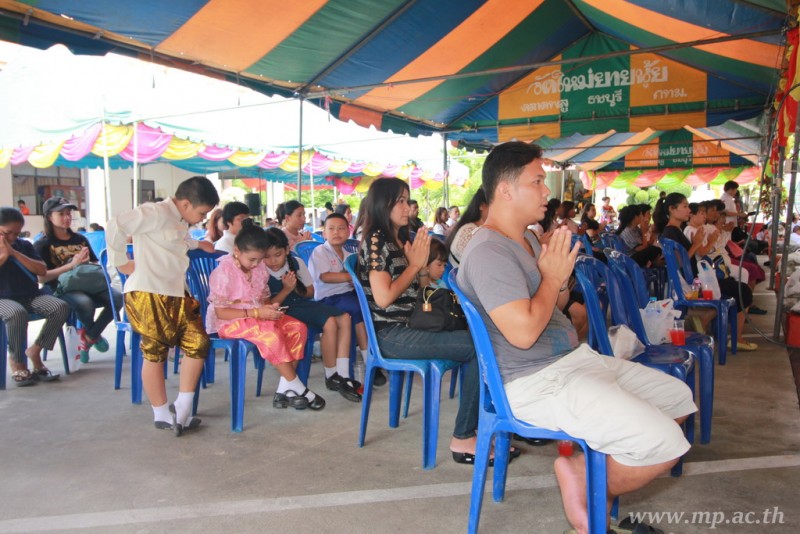 คณะผู้บริหาร ครู นักเรียน ผู้ปกครอง นำเทียนพรรษา ผ้าอาบน้ำฝน เครื่องไทยทาน และปัจจัยเป็นจำนวนเงิน 41,513.25 บาท ถวาย ณ วัดใหม่ยายนุ้ย ในวันที่ 15 กรกฎาคม 2559