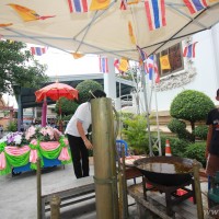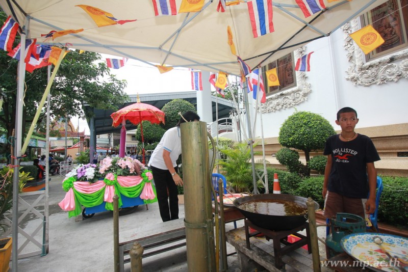 คณะผู้บริหาร ครู นักเรียน ผู้ปกครอง นำเทียนพรรษา ผ้าอาบน้ำฝน เครื่องไทยทาน และปัจจัยเป็นจำนวนเงิน 41,513.25 บาท ถวาย ณ วัดใหม่ยายนุ้ย ในวันที่ 15 กรกฎาคม 2559