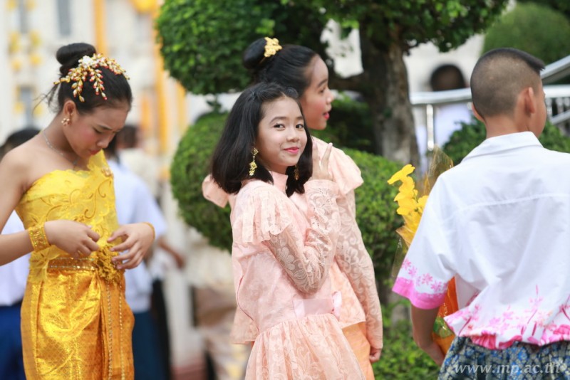 คณะผู้บริหาร ครู นักเรียน ผู้ปกครอง นำเทียนพรรษา ผ้าอาบน้ำฝน เครื่องไทยทาน และปัจจัยเป็นจำนวนเงิน 41,513.25 บาท ถวาย ณ วัดใหม่ยายนุ้ย ในวันที่ 15 กรกฎาคม 2559