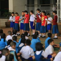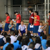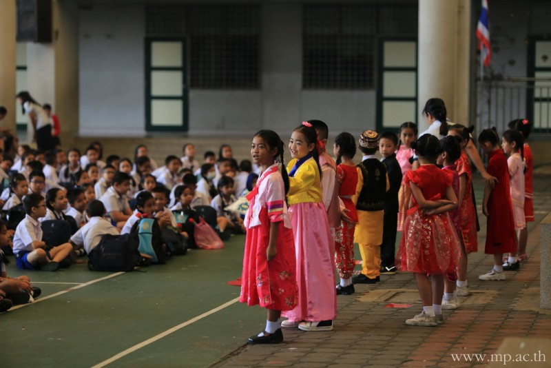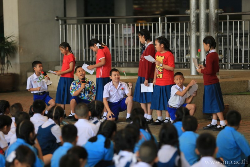 กลุ่มสาระการเรียนรู้ภาษาต่างประเทศ โดยคุณครูชาวต่างชาติ จัดกิจกรรมวันวาเลนไทน์ให้กับนักเรียนหลังเคารพธงชาติ ในวันที่ 14 กุมภาพันธ์ 2561