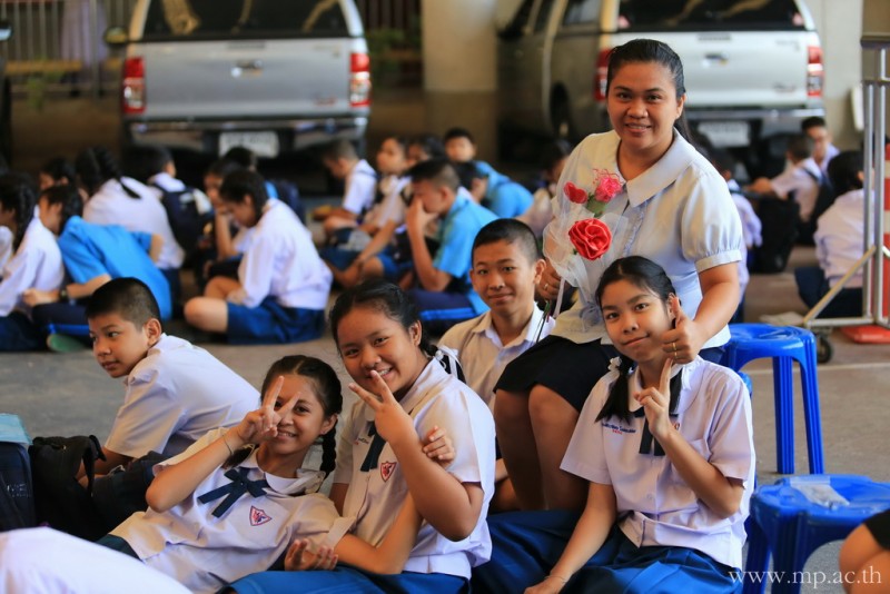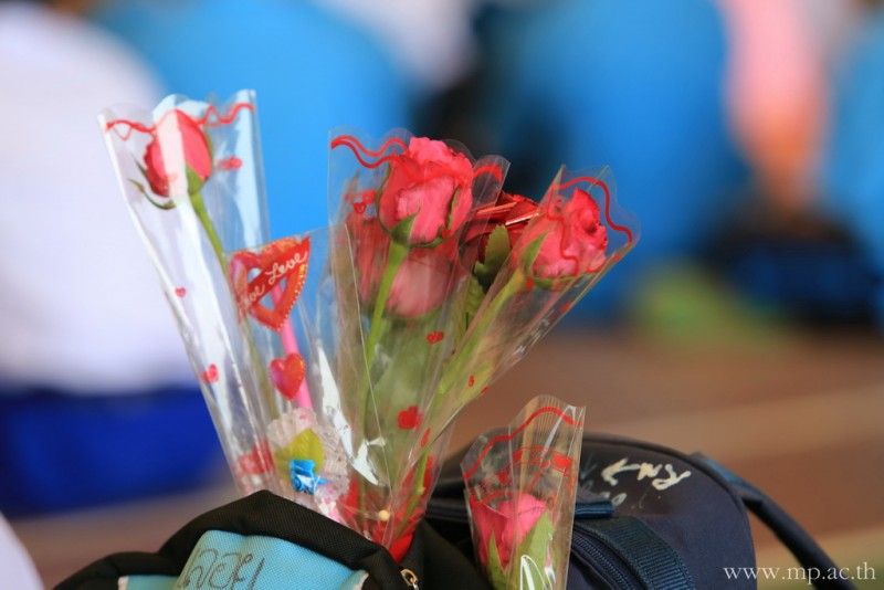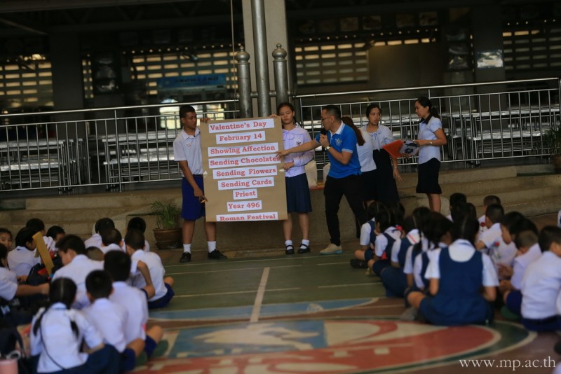 กลุ่มสาระการเรียนรู้ภาษาต่างประเทศ โดยคุณครูชาวต่างชาติ จัดกิจกรรมวันวาเลนไทน์ให้กับนักเรียนหลังเคารพธงชาติ ในวันที่ 14 กุมภาพันธ์ 2561