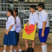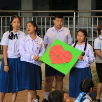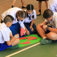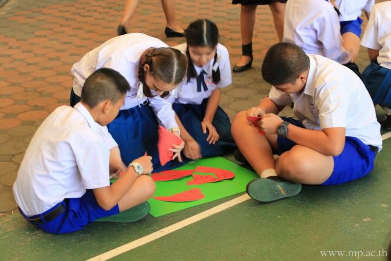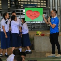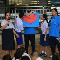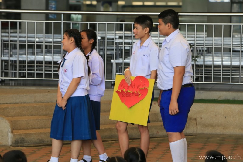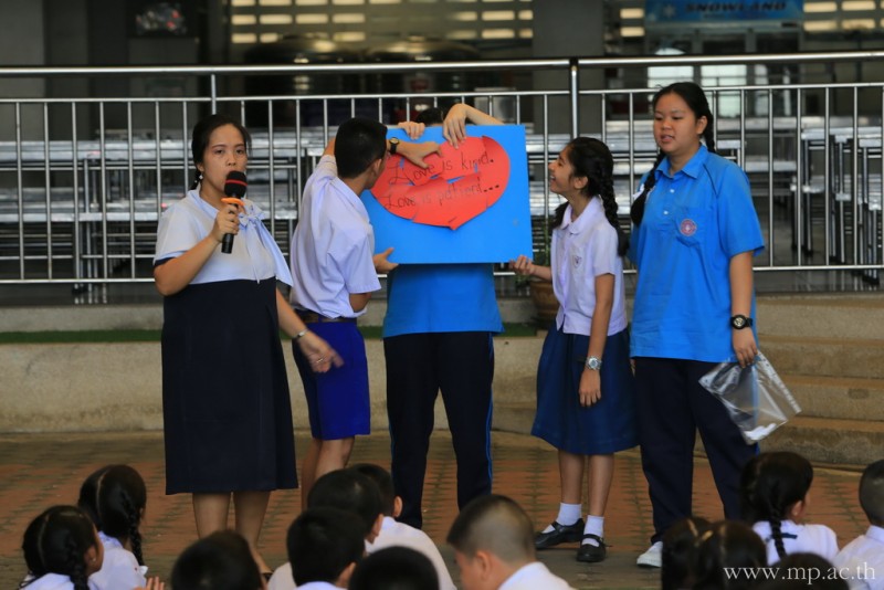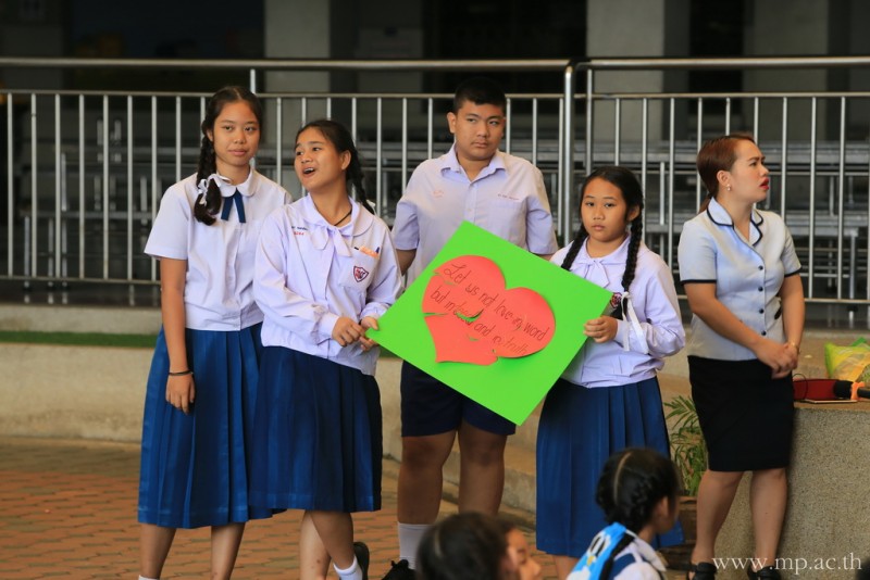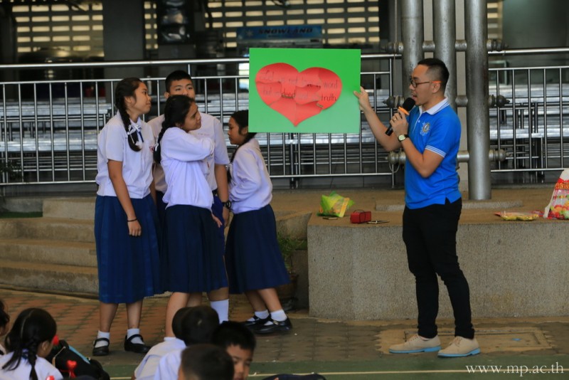กลุ่มสาระการเรียนรู้ภาษาต่างประเทศ โดยคุณครูชาวต่างชาติ จัดกิจกรรมวันวาเลนไทน์ให้กับนักเรียนหลังเคารพธงชาติ ในวันที่ 14 กุมภาพันธ์ 2561