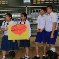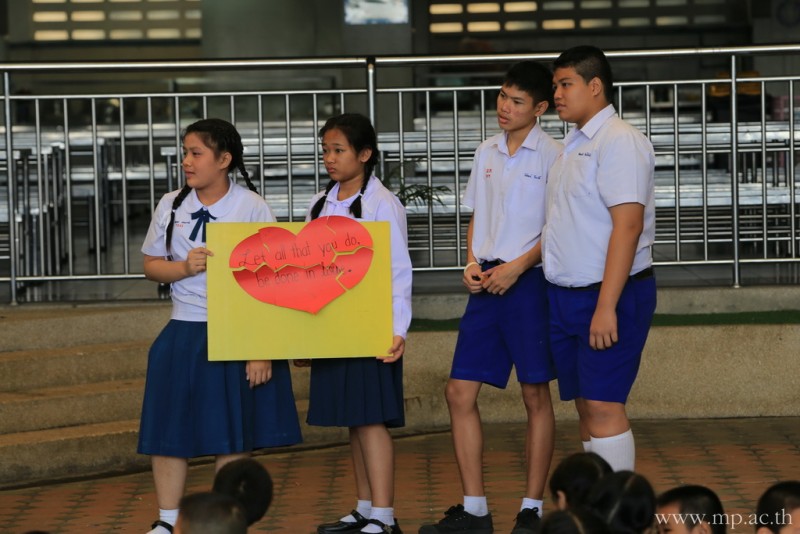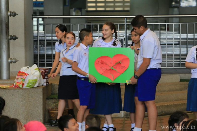 กลุ่มสาระการเรียนรู้ภาษาต่างประเทศ โดยคุณครูชาวต่างชาติ จัดกิจกรรมวันวาเลนไทน์ให้กับนักเรียนหลังเคารพธงชาติ ในวันที่ 14 กุมภาพันธ์ 2561