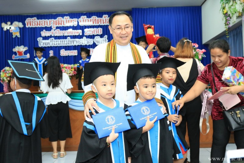 โรงเรียนแม่พระประจักษ์ ฝ่ายปฐมวัย จัดงานรับวุฒิบัตรให้กับนักเรียนชั้นอนุบาล 3 ที่จบการศึกษาปีการศึกษา 2560 ในวันที่ 3 มีนาคม 2561